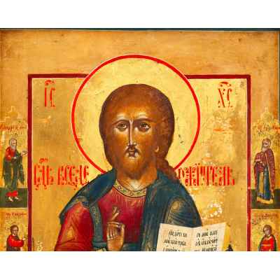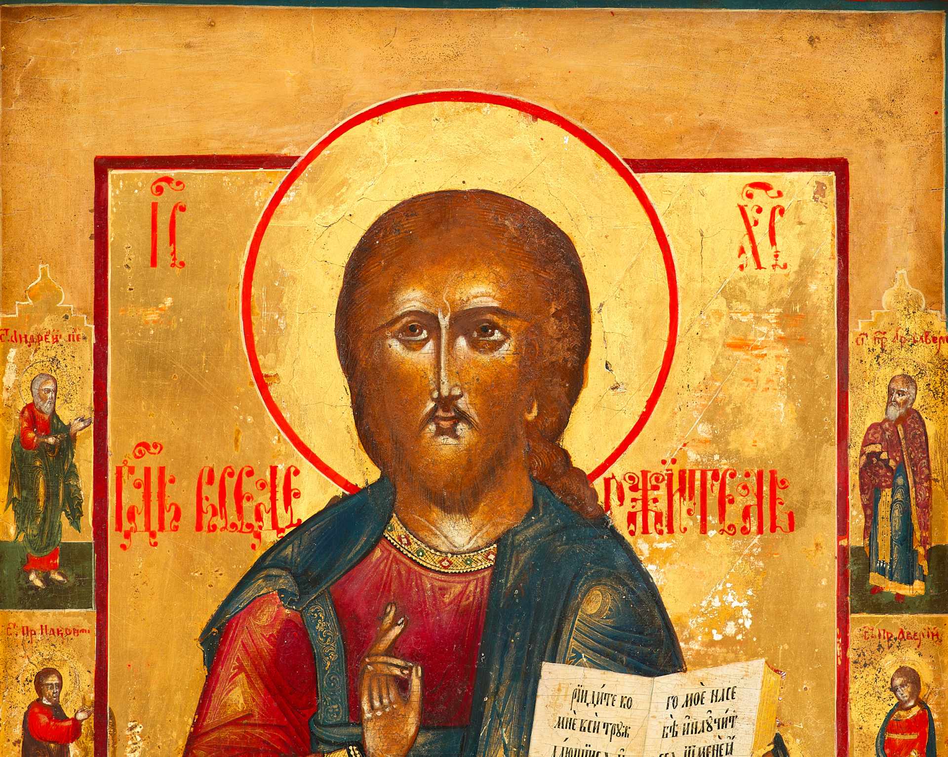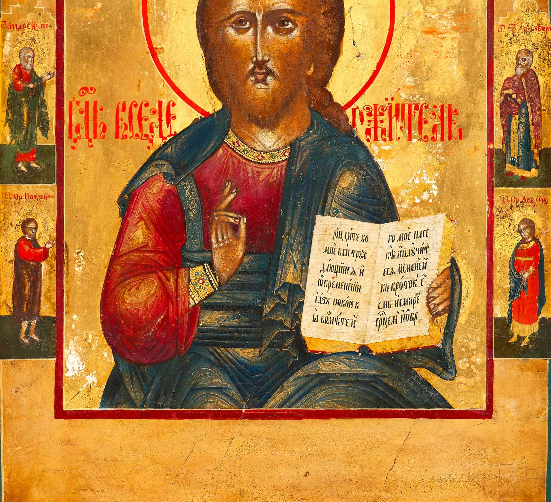 Изображение берет свое начало в Византии, где оно стояло во главе всех иконописных типов как наиболее возвышенный образ Богочеловека, а затем, после принятия христианства, широко распространяется на Руси как сюжет фресковой росписи храмов и как моленная икона. На иконе Христос предстает как Судия мира и его Спаситель.