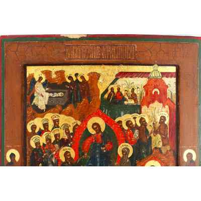 Судя по изображенным на полях святым, можно утверждать, что икона была написана на заказ.
