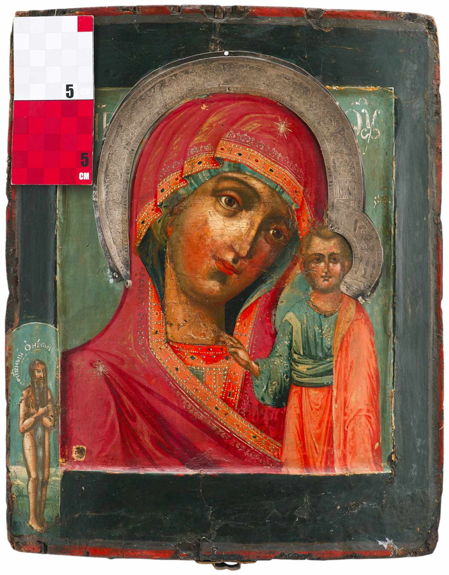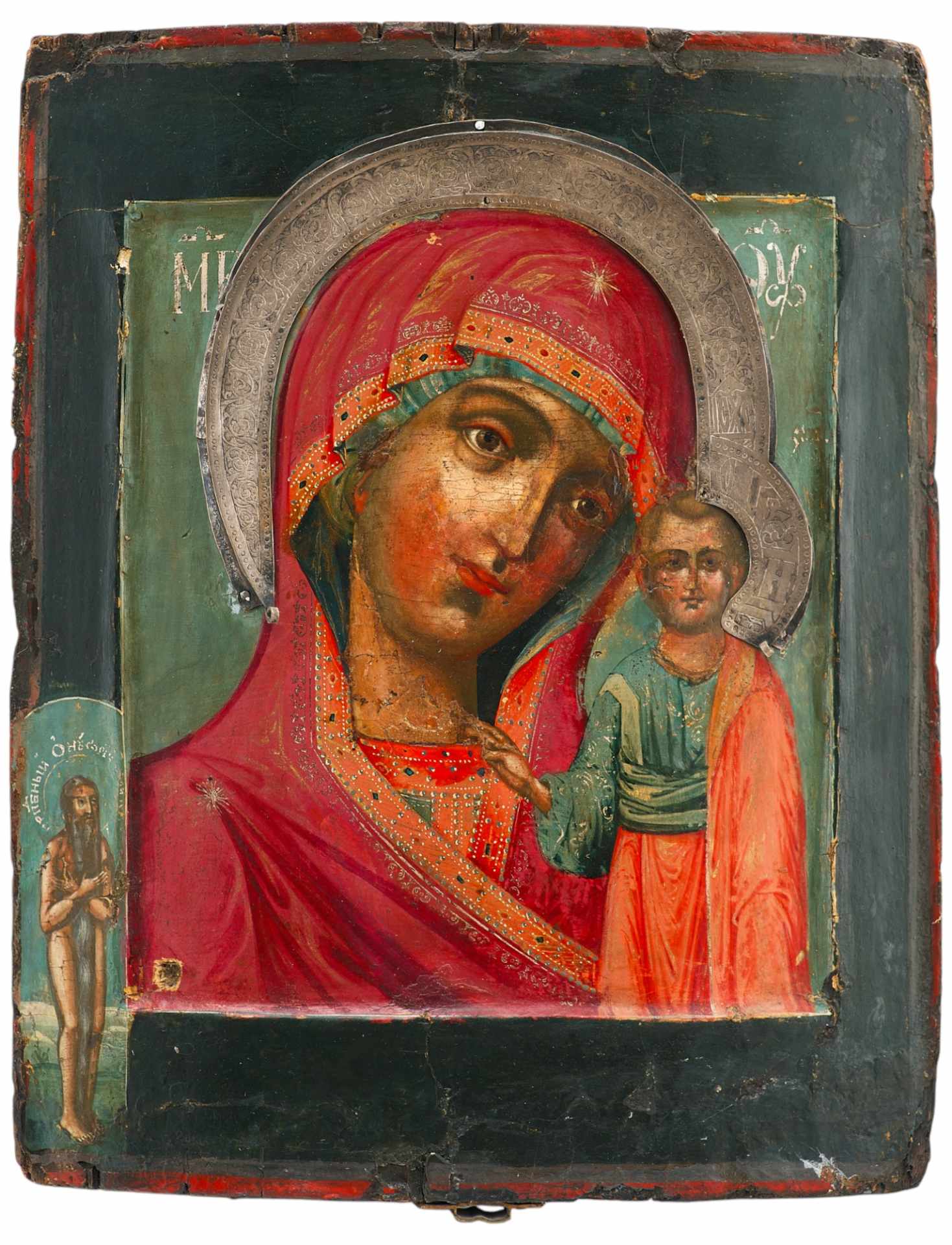Икона Богоматерь Казанская венец серебро пер. пол. XVIII в. 32x27x2,8 см. первая половина XVIII века