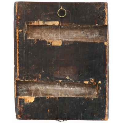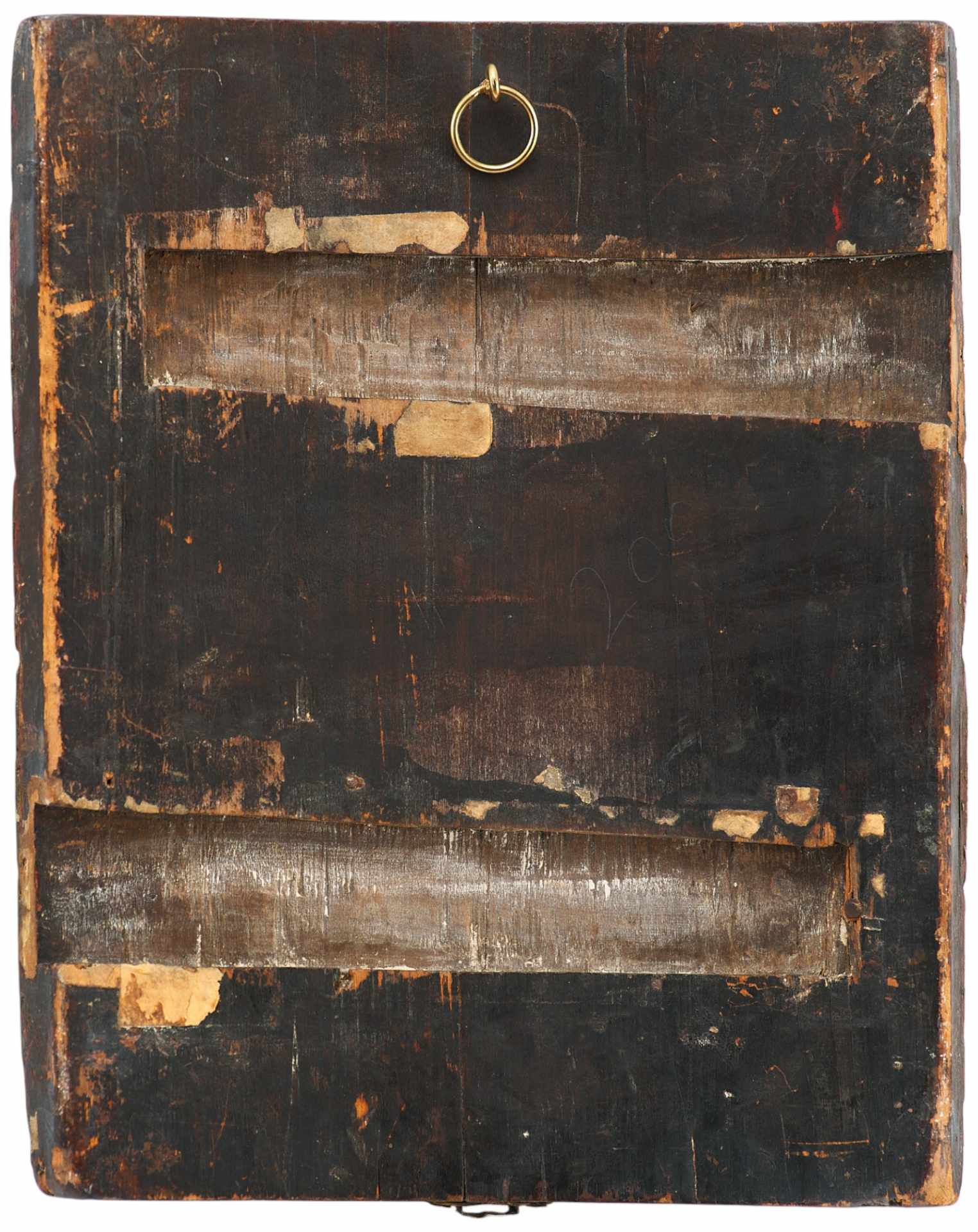 Маленькие петельки на нижних углах венцов Марии и Младенца указывают на то, что некогда на них была подвешена ещё одна деталь убора — цата, которая была традиционным украшением иконы. Икона написана, вероятно, московским мастером, о чем свидетельствует высокое качество исполнения, лишенное провинциальной упрощенности.