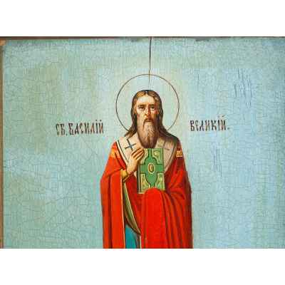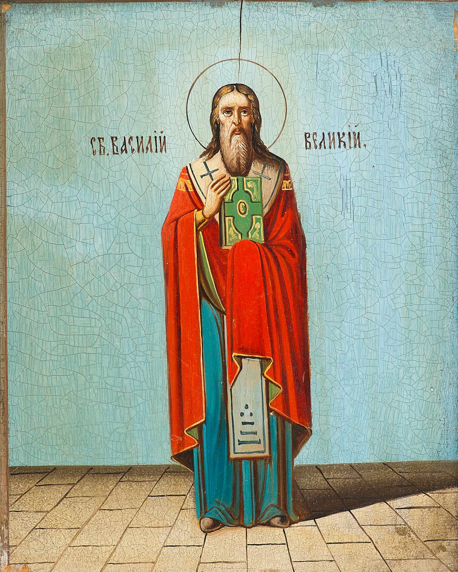 Василий Великий жил в IV веке и прославился как один из крупнейших христианских богословов. Он считается автором текста Божественной литургии, используемой в православной церкви доныне. Помимо богословских трудов, он активно занимался социальной деятельностью — строил приюты, больницы, оказывал помощь обездоленным. Память святителя отмечается 1 (14) января, а также 30 января (12 февраля) в день Собора трёх святителей вместе с Иоанном Златоустом и Григорием Богословом. В народном благочестии ему молятся при начале новых дел, особенно в ремесле и строительстве.