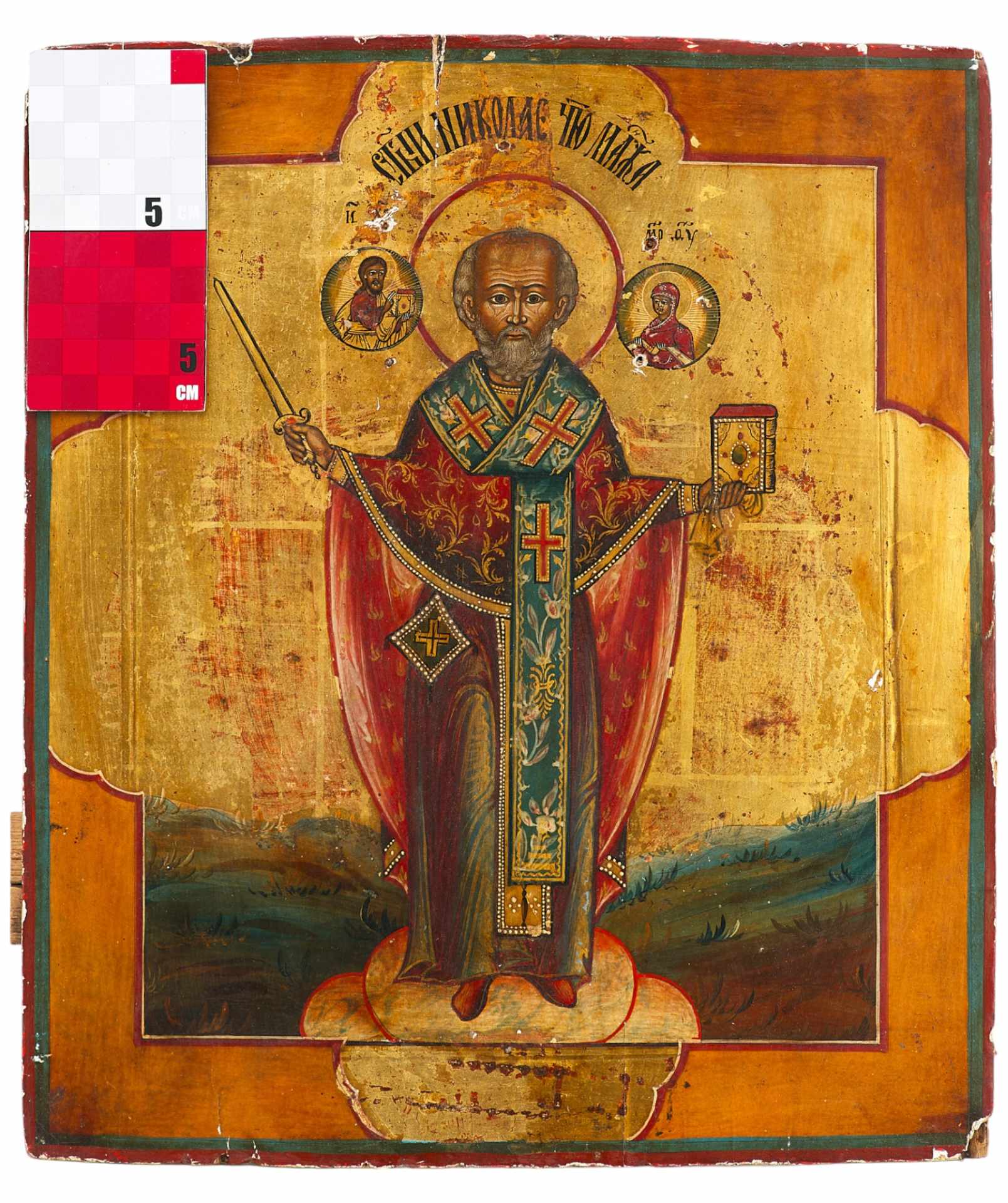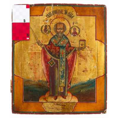 Икона Святой Никола Можайский темпера сер. XIX в. 31,3x27,5x2,5 см. последняя четверть ХІХ века