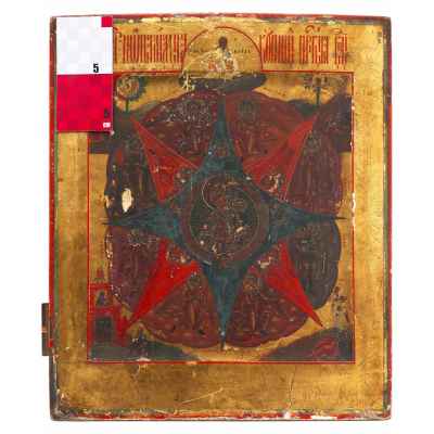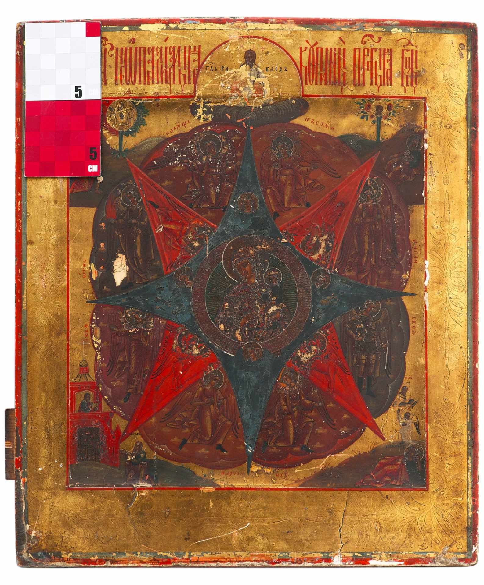Икона Богоматерь Неопалимая Купина темпера, золото Ветка сер. XIX в. 35,9x31x2,6 см. Середина XIX века