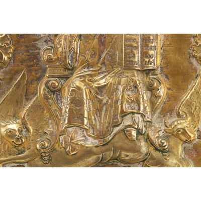 Икона в окладе Спас на престоле малсо, латунь, сер. XIX в. 31,8x25x2,5 см. Третья четверть XIX века