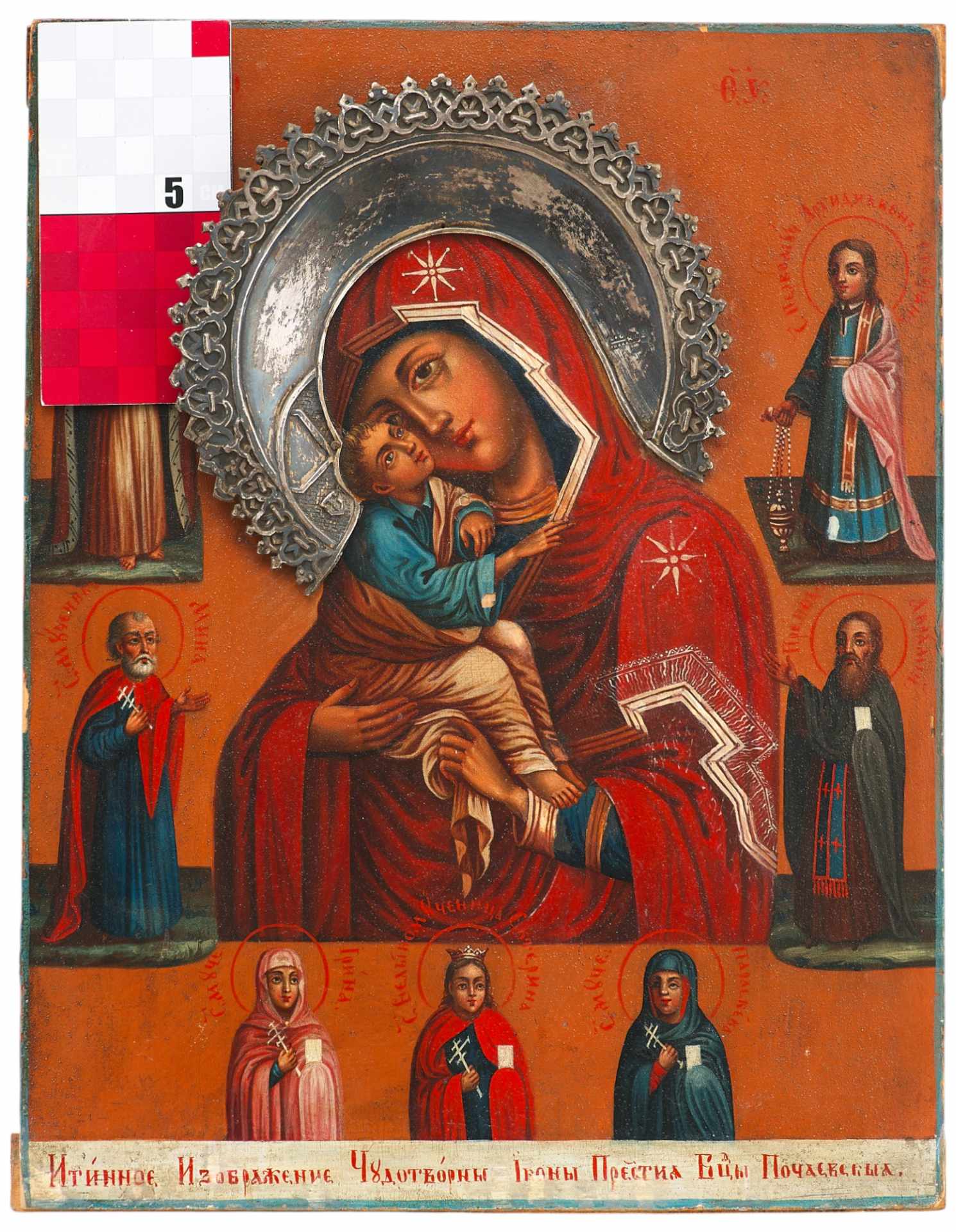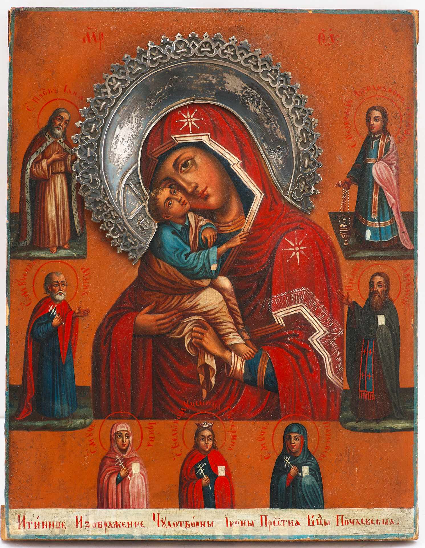 Икона Богоматерь Почаевская масло, серебро 84 пр. встор. пол. XIX в. 31x24 см. 2 половина XIX века