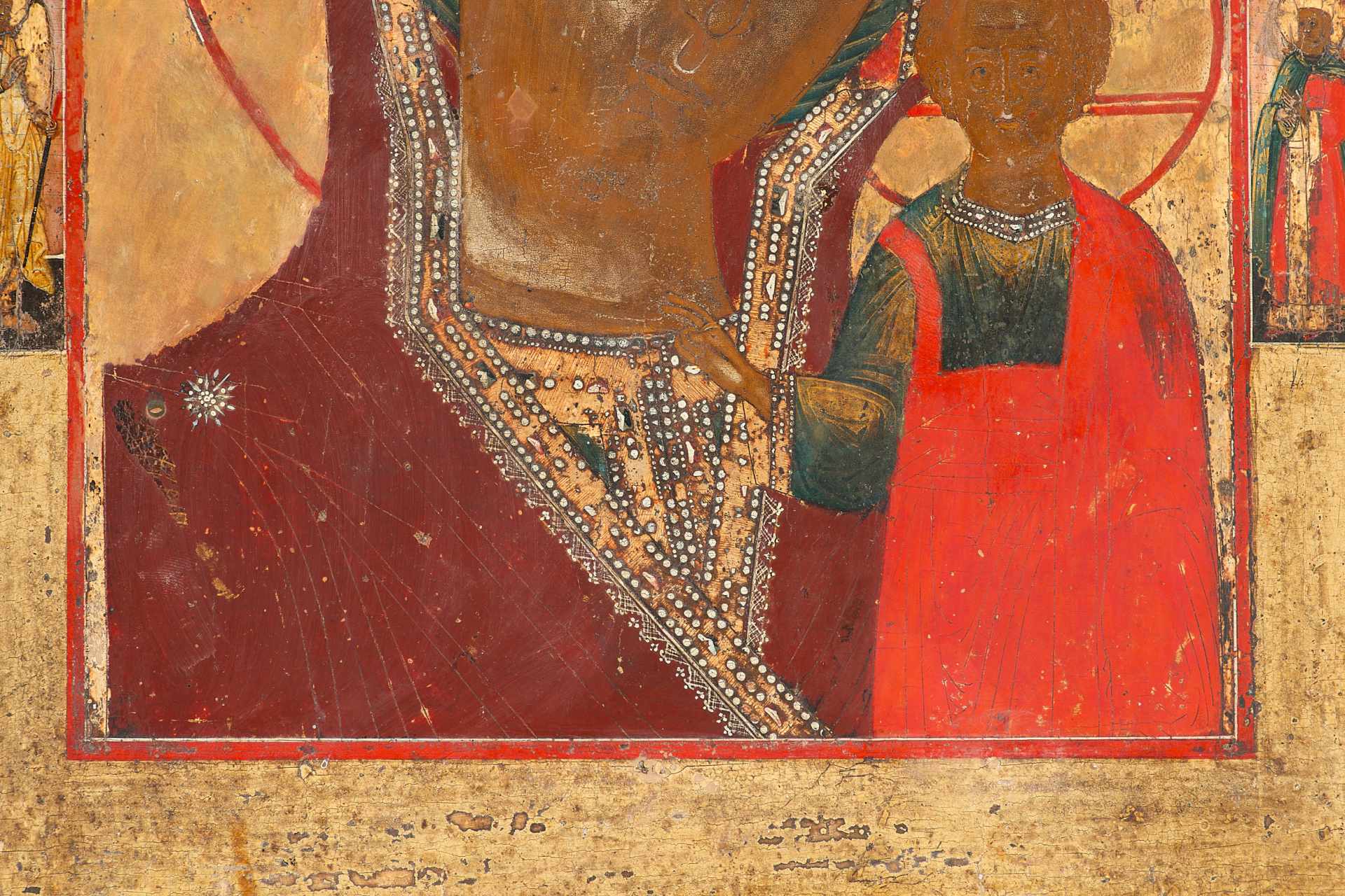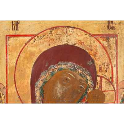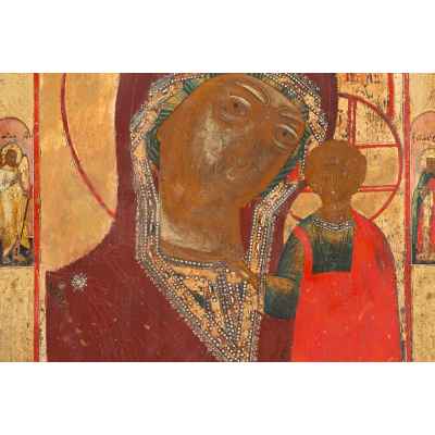 На иконе изображены - Богоматерь и поколенное изображение младенца Христа. Богоматерь Казанская одна из