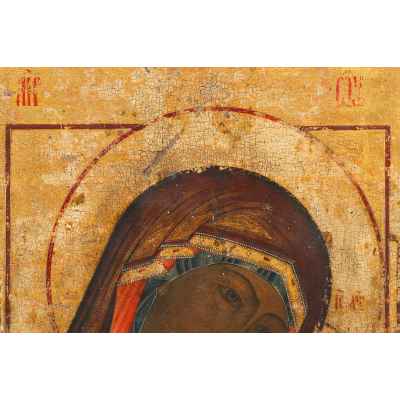 Икона Богоматери Корсунской - типичное произведение уральских старообрядческих иконописных мастерских. При ее создании использована яичная темпера и золочение.