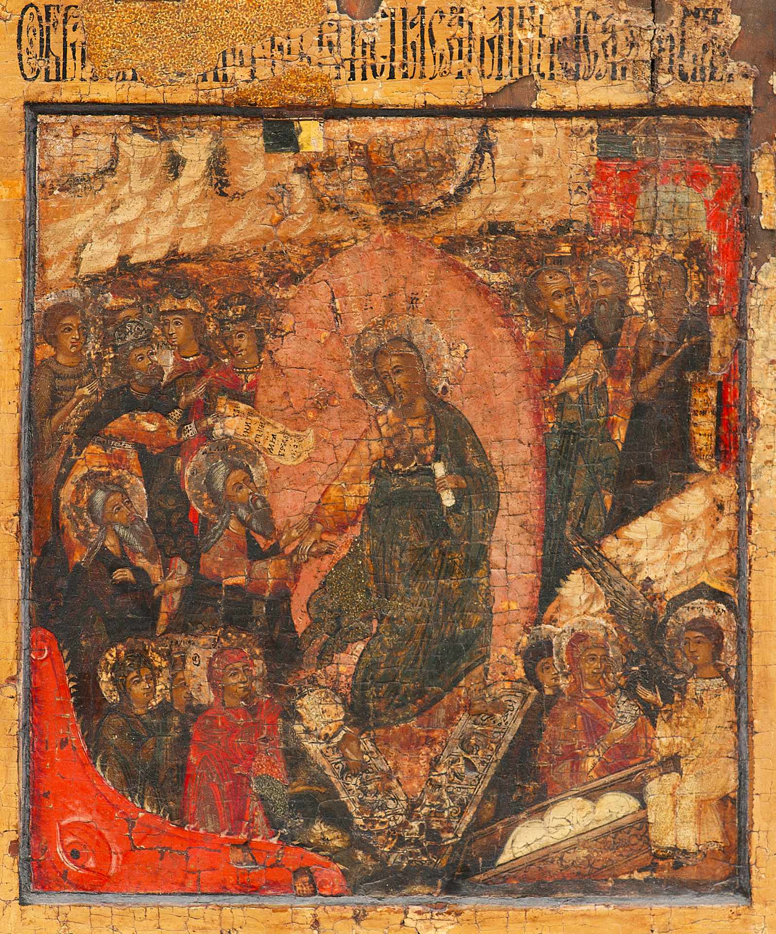 Иконография “Сошествие во ад” сложилась к X веку. К ранним примерам изображения Сошествия во ад относятся миниатюры Хлудовской Псалтыри (ГК век).