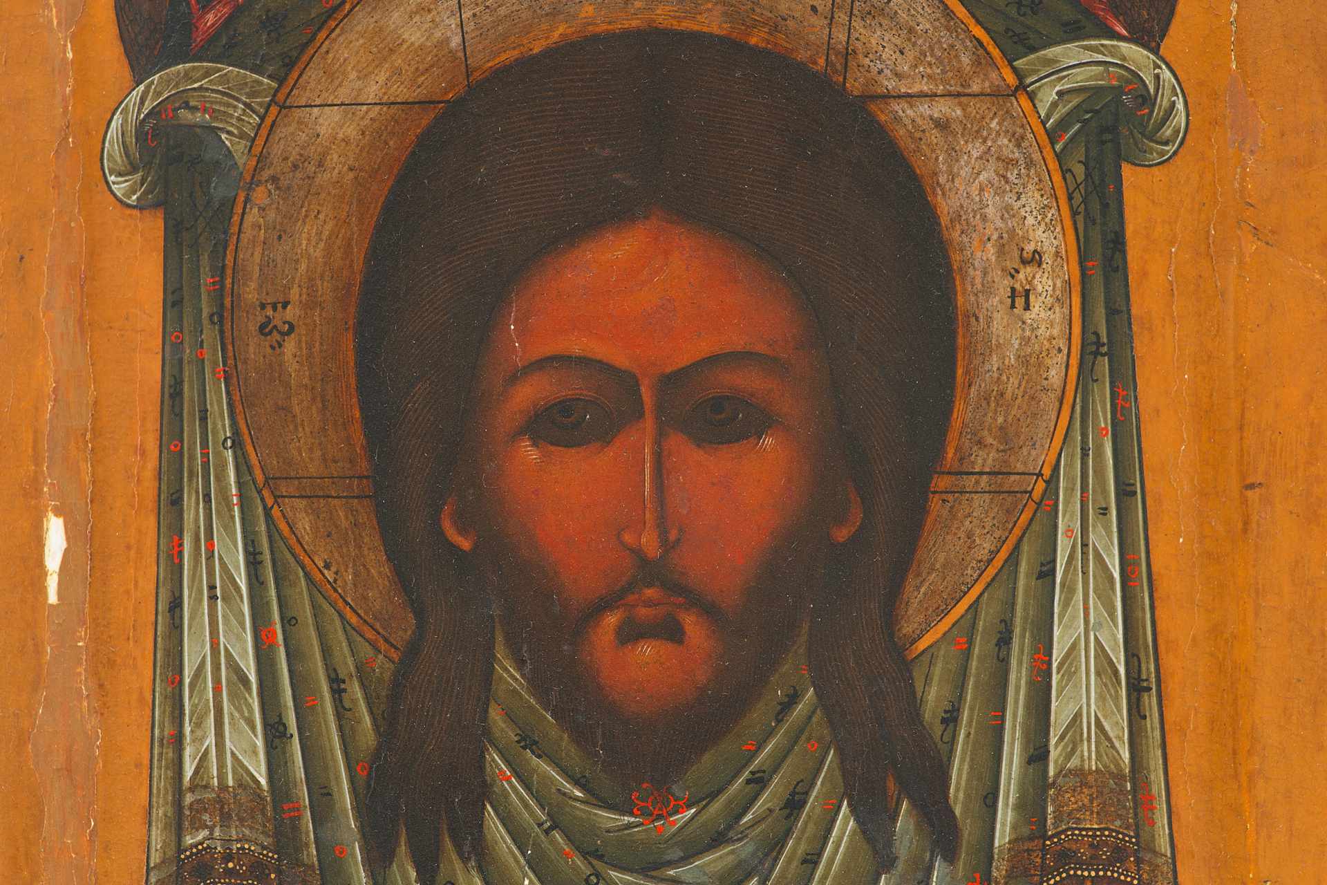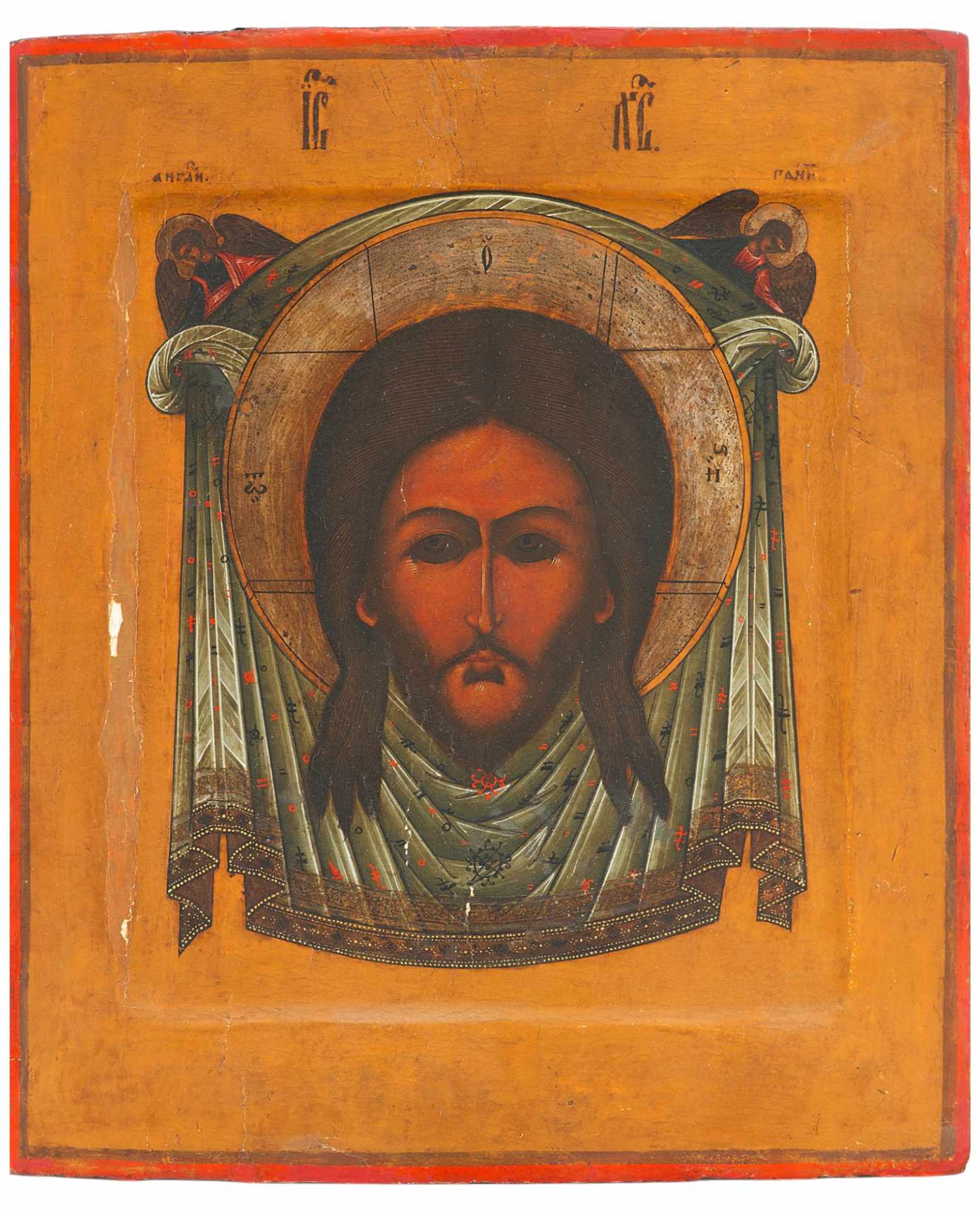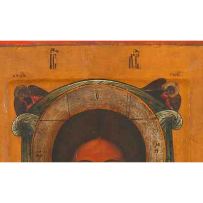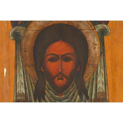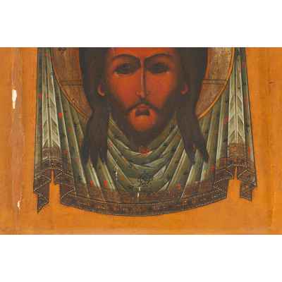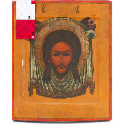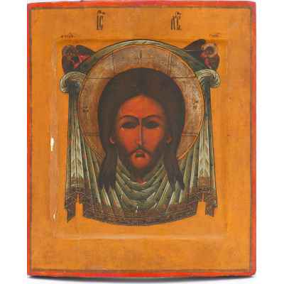 Икона Спас Нерукотворный темпера сер. XIX в. 31,2x26,8x2,5 см. Центральная часть России Вторая половина XIX века