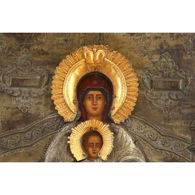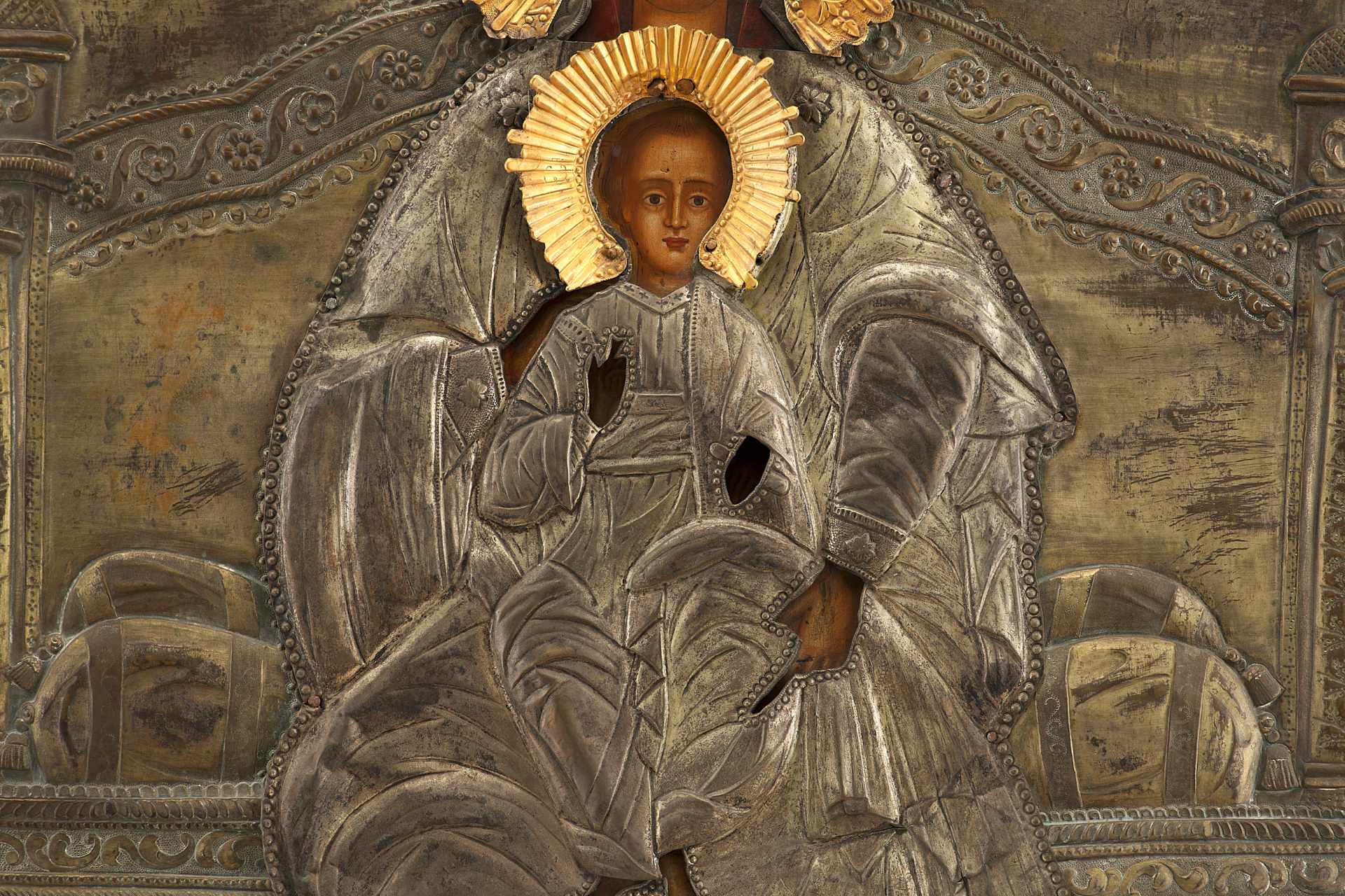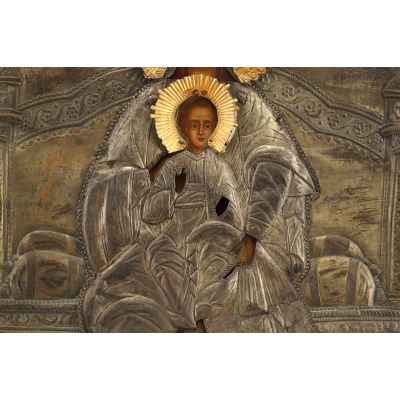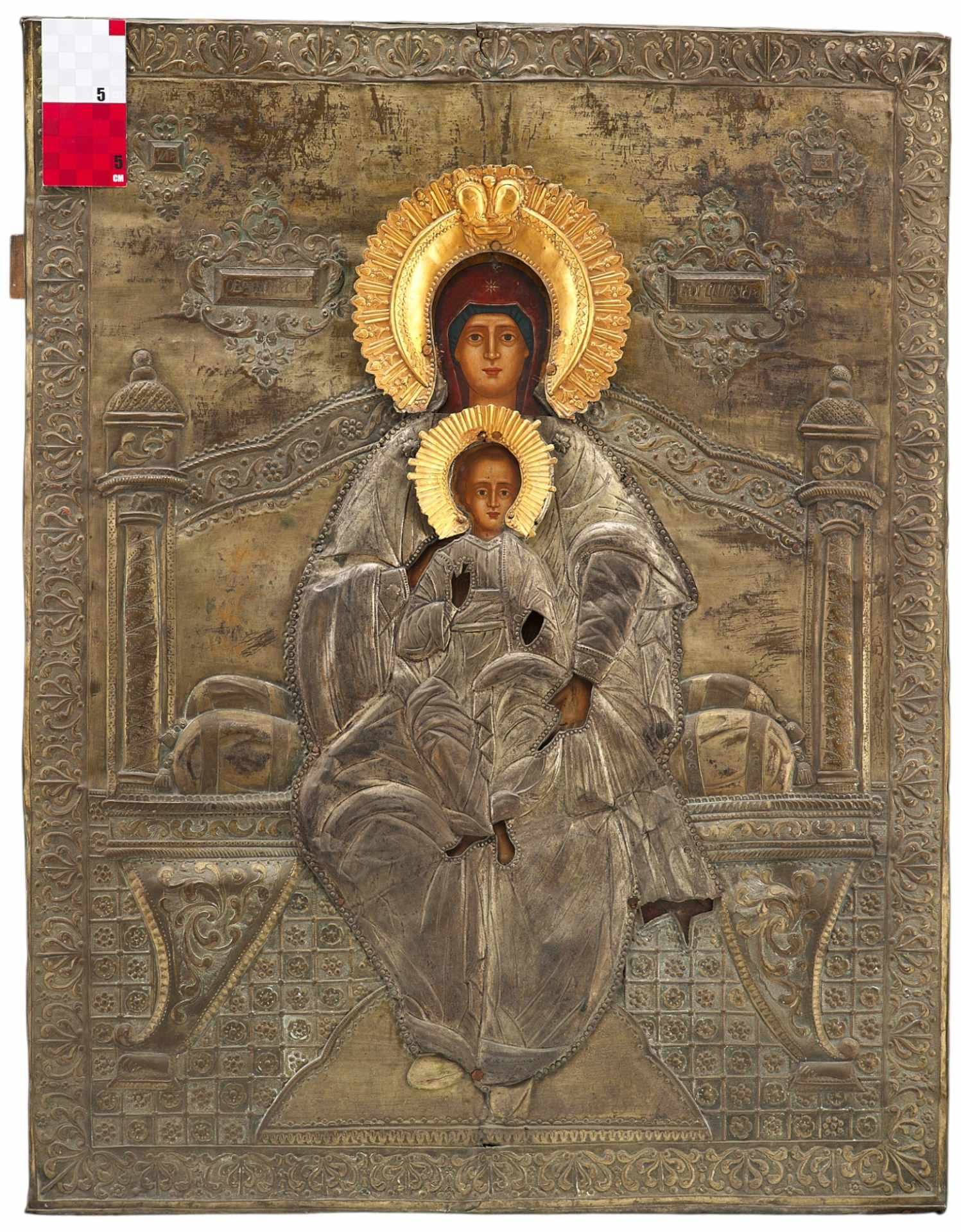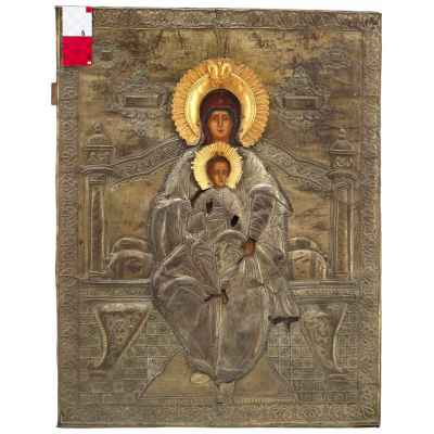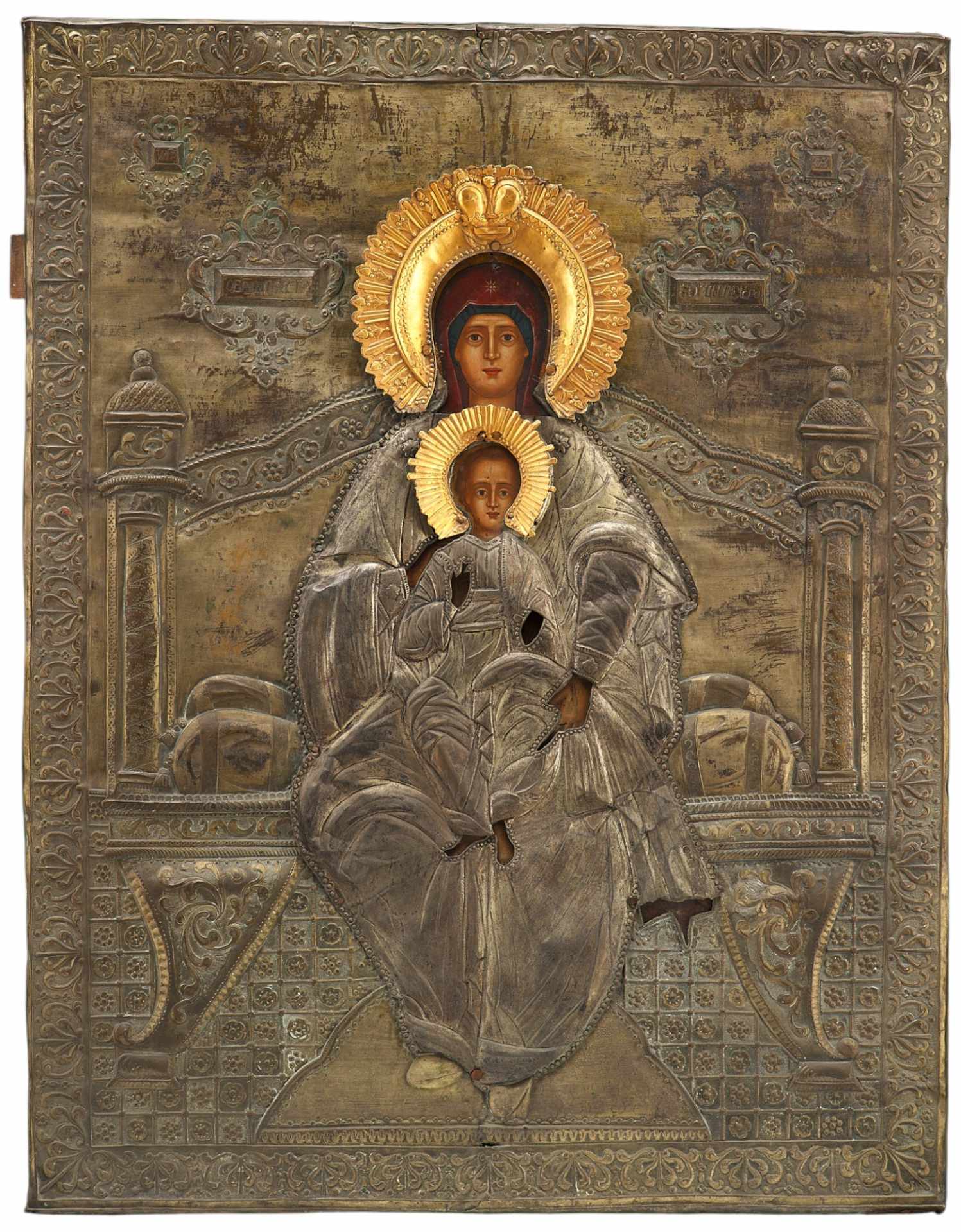 Храмовая икона Богоматерь На троне темпера, латунь серебро 84 пр. сер. XIX в. 72x56 см. Санкт-Петербург около 1849 г