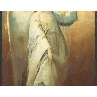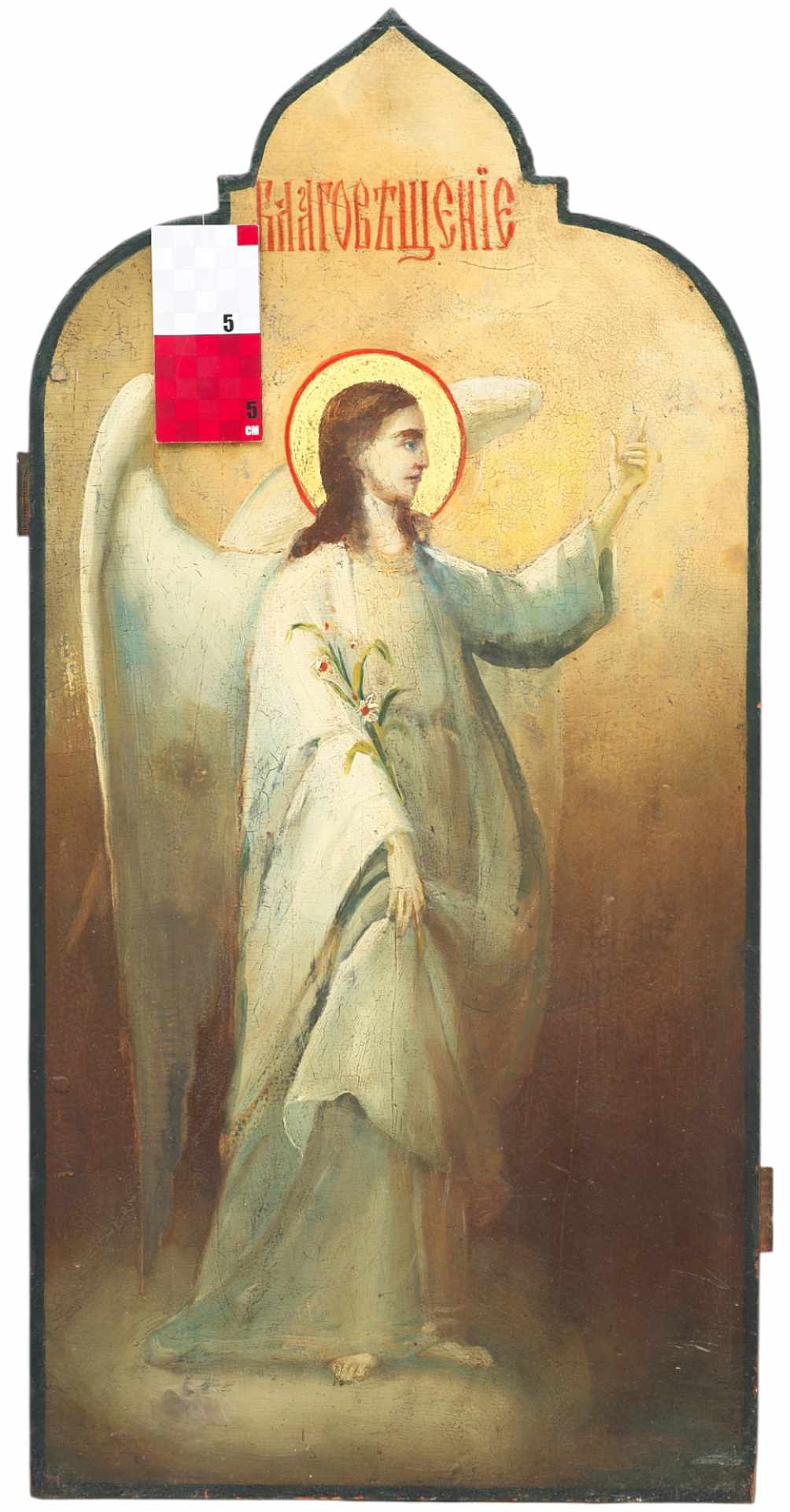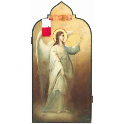 Икона Арх. Гавриил Благовещение масло. кон. XIX в. 69,6x35x2,5 см. конец ХІХ-начало XX вв