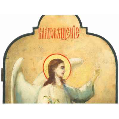 Благовещение Пресвятой Богородицы - один из двунадесятых праздников православной церкви, отмечается 25 марта (7 апреля). В этот день вспоминается евангельское событие произошедшее в галилейском городе Назарете: посланный Богом архангел Гавриил возвестил Деве Марии о том, что она родит Сына Божия наитием Святого Духа (Лука 1, 26-38). Гавриил двуперстно благословляет Богоматерь, в левой руке его ветвь с цветком напоминающим Вифлеемскую звезду, которая появится на небесах во время Рождества Христова.