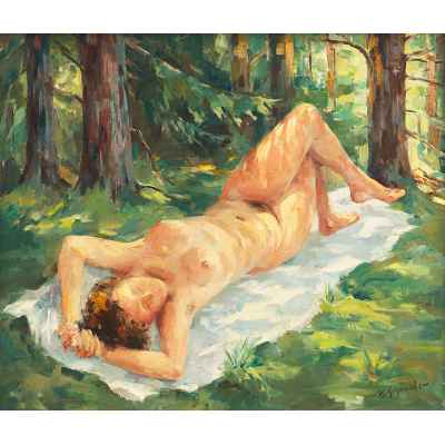 Картина «Обнаженная натурщица в лесу» Европа первая половина XX века