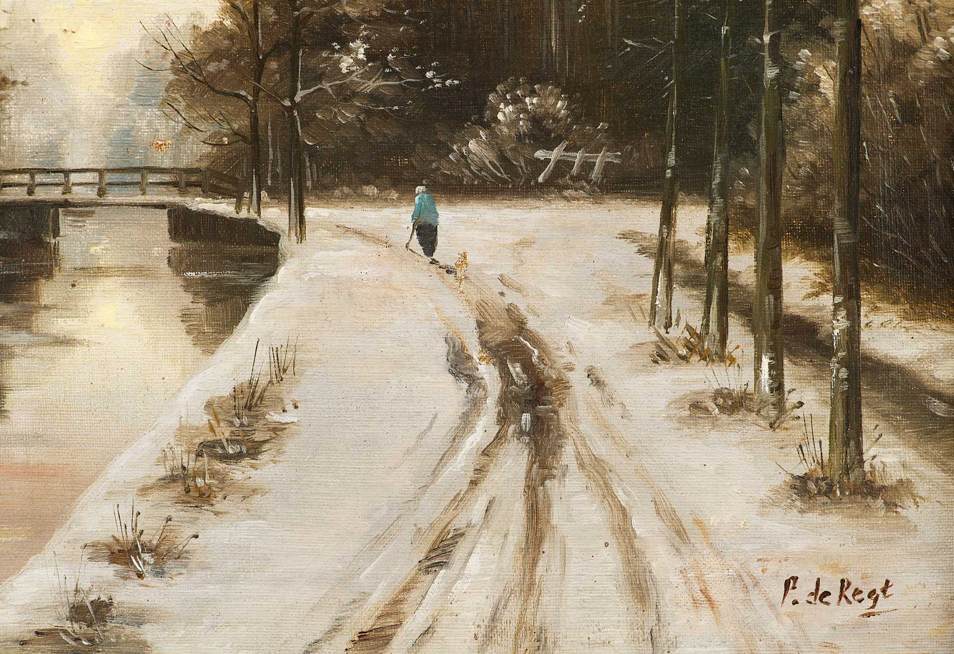 Питер де Регт, голландский художник, работал с конца XIX века до начала 1960-х годов, преимущественно в жанре пейзажной живописи. Его творчество часто связано с изображением сельской местности и зимней природы. Он был самоучкой, но достиг значительного уровня мастерства, выставлялся с 1907 года, а его произведения сегодня находятся в музейных и частных коллекциях по всему миру.