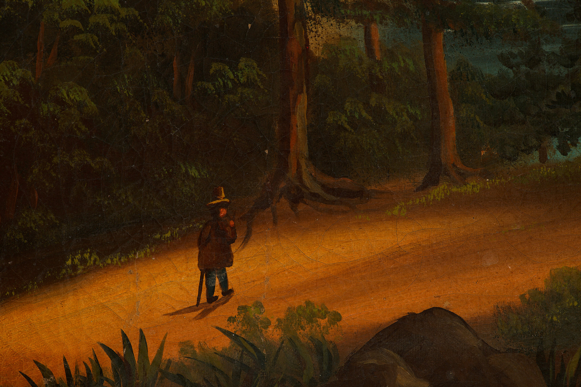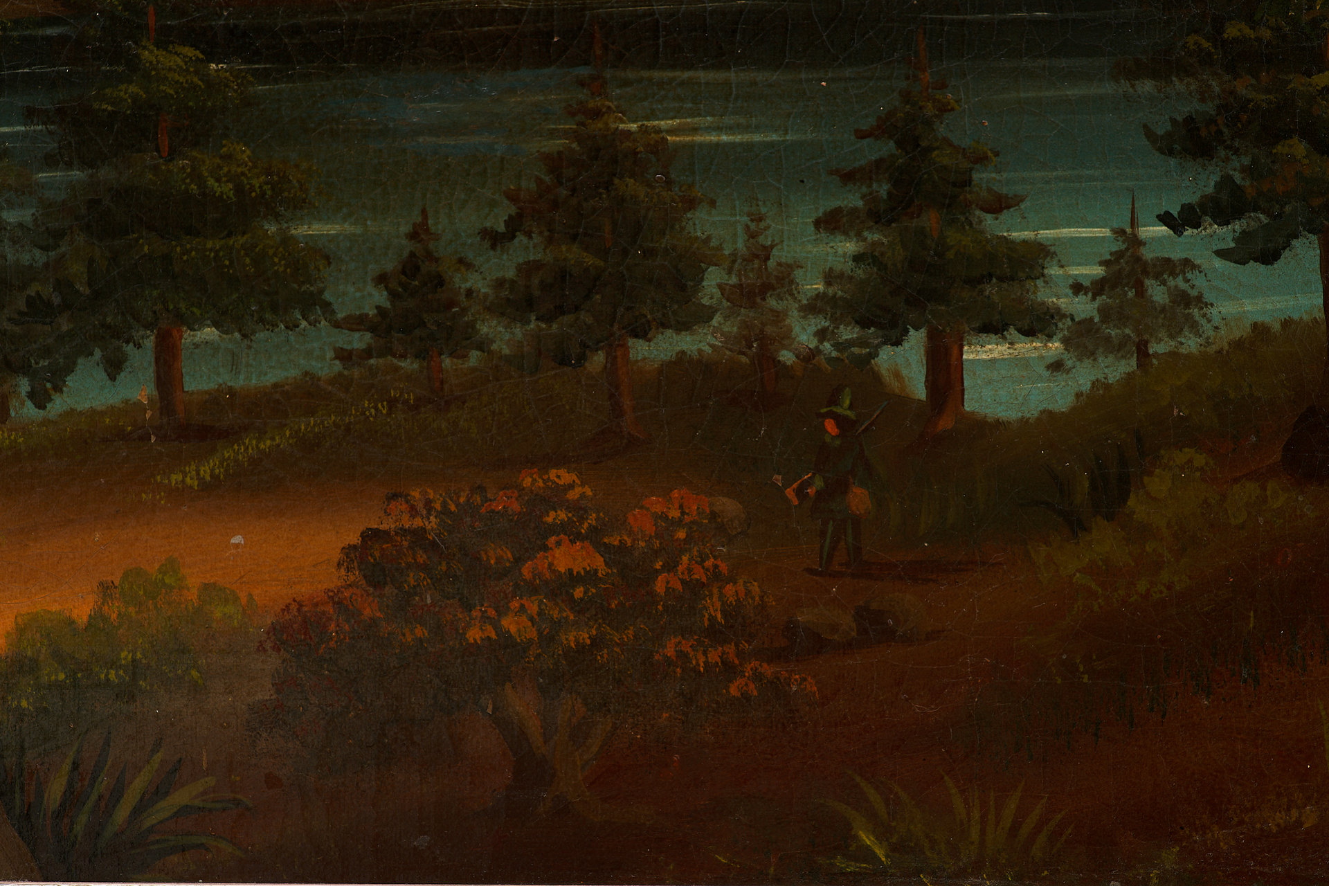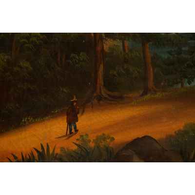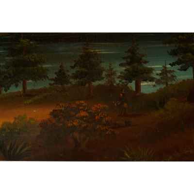 Работа относится к периоду конца XIX — начала XX века и написана неизвестным европейским художником в технике масла на холсте. Стилистически она отражает принципы бидермейера — направления, сформировавшегося в Германии и Австрии в первой половине XIX века и пережившего позднее возвращение в декоративной живописи. Этот стиль ориентирован на изображение буржуазного уюта, идеализированных пейзажей, сцен частной жизни, а также воспевание упорядоченного мира и стабильности.