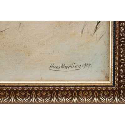 Автор полотна — Ганс Мартини (Hans Martiny), художник, биографические сведения о котором известны фрагментарно, однако его имя фигурирует среди европейских мастеров, работавших в тематике охотничьего реализма. Его произведения отличаются вниманием к натуре и точным соблюдением повадок животных, что подчёркивает его знание предмета.