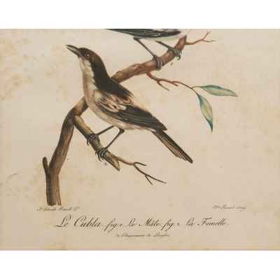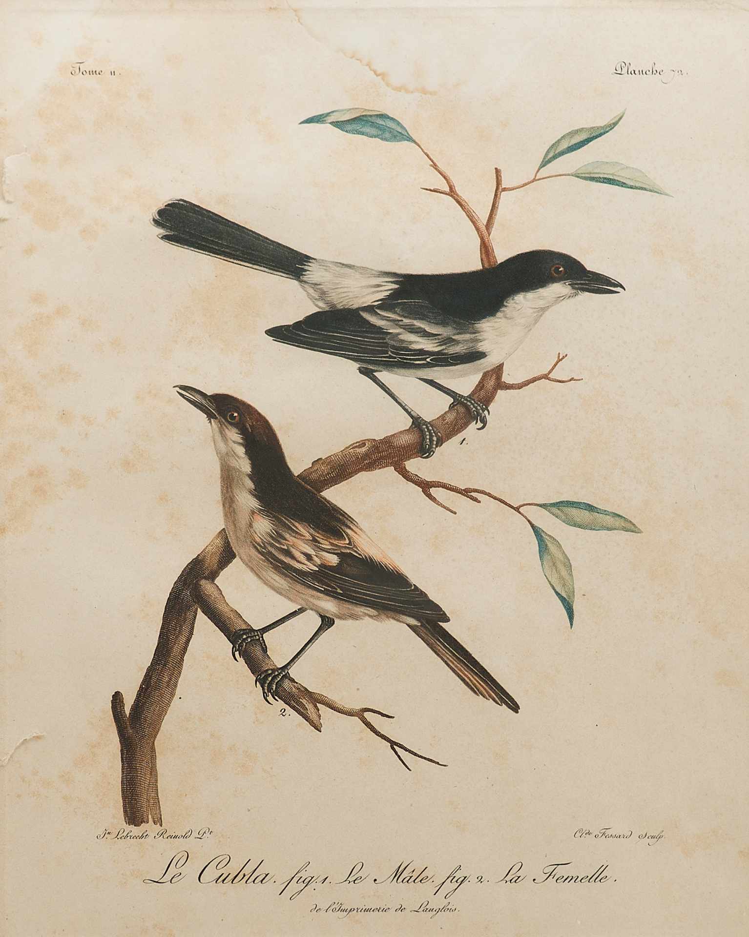 «Естественная история птиц Африки» - фундаментальный научный труд французского орнитолога Франсуа ЛеВеллана (1753 - 1824). ЛеВеллан долгое время жил в Африке, провел многочисленные и скрупулезные исследования птиц этого континента. Произведение издавалось при жизни автора в течение двенадцати лет. Рисунки птиц для иллюстраций к этому многотомному произведению были выполнены Ж.Ф. Рейнольдом. По этим рисункам было отгравировано около трехсот работ граверами Клодом Фессаром (1740 - после 1803) и Ж. Л. Пере.