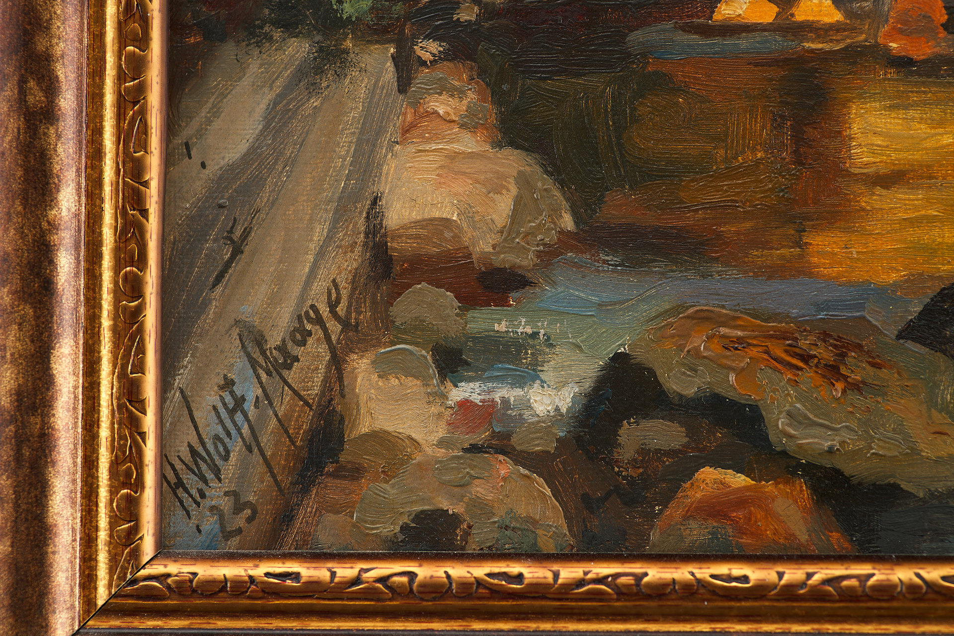 Произведение написано в жанре реалистического пейзажа, характерного для немецкой академической школы начала XX века. Картина была создана в 1923 году художником Хьюго Вольффом-Мааге (Hugo Wolff-Maage, 1866 – после 1925) — берлинским мастером, принадлежащим к так называемому «пропавшему поколению» художников, чьё творчество оказалось забытым или малоизвестным после исторических потрясений XX века.