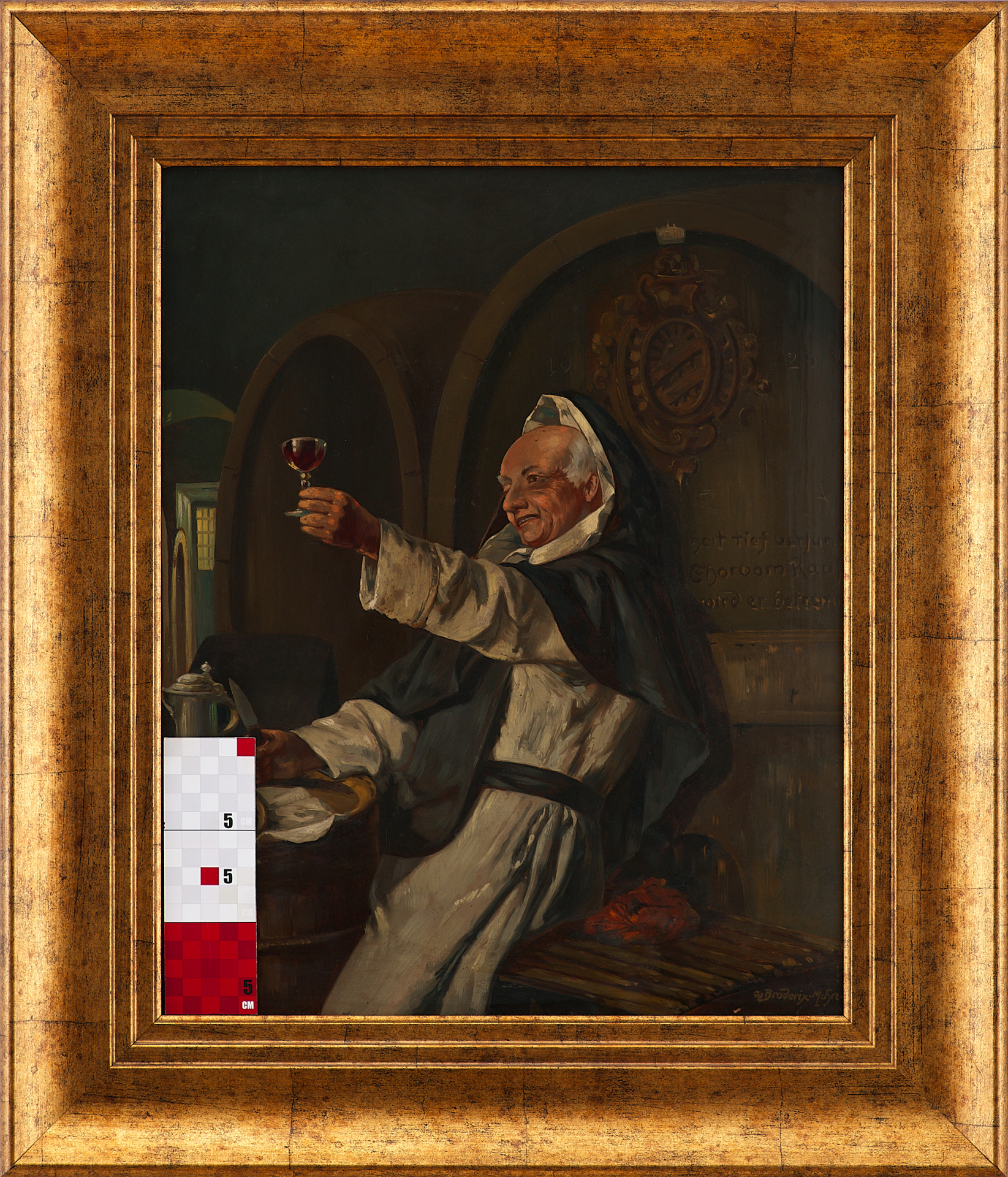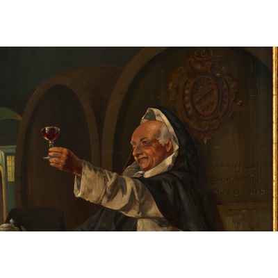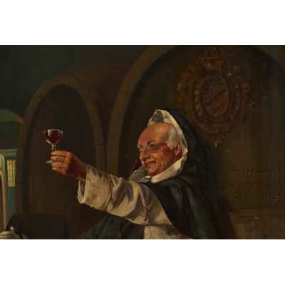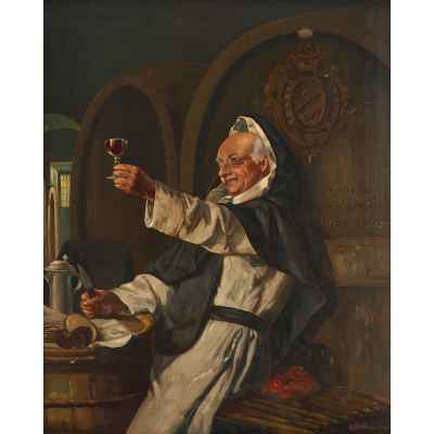 На картине «Одна хорошая капля» изображён монах-католик, радостно поднимающий бокал красного вина в винном погребе. Он одет в традиционное монашеское облачение, а его поза, жест и выражение лица передают чувство удовлетворения и весёлой иронии. На заднем плане — крупные дубовые винные бочки, одна из которых украшена гербом с надписью на немецком языке. Перед монахом простая монастырская трапеза: хлеб, колбаса, нож и жестяной кувшин, стоящие на небольшой бочке.