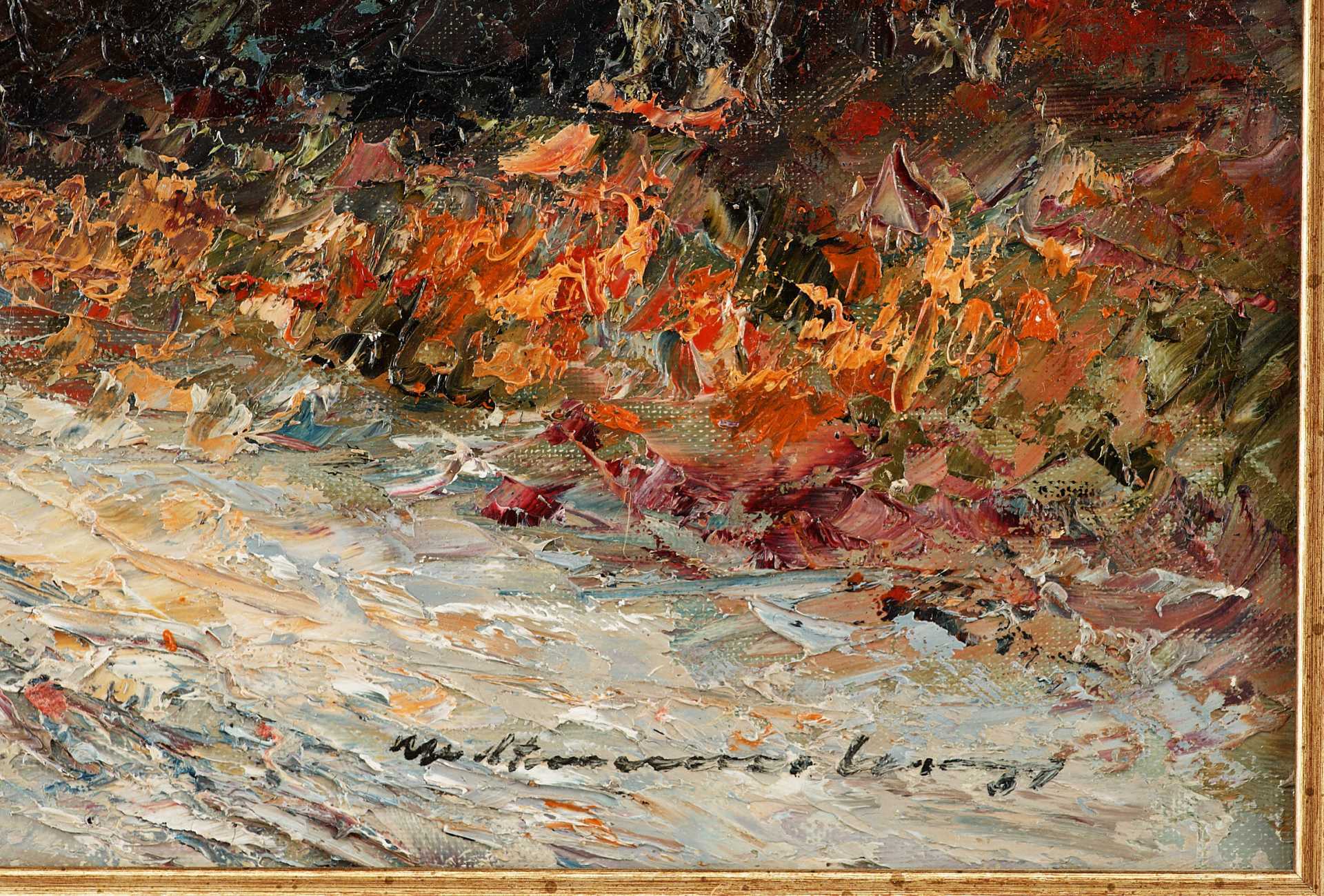 Авторская подпись полностью соотносится с красочным слоем, что даёт возможность считать её подлинной.