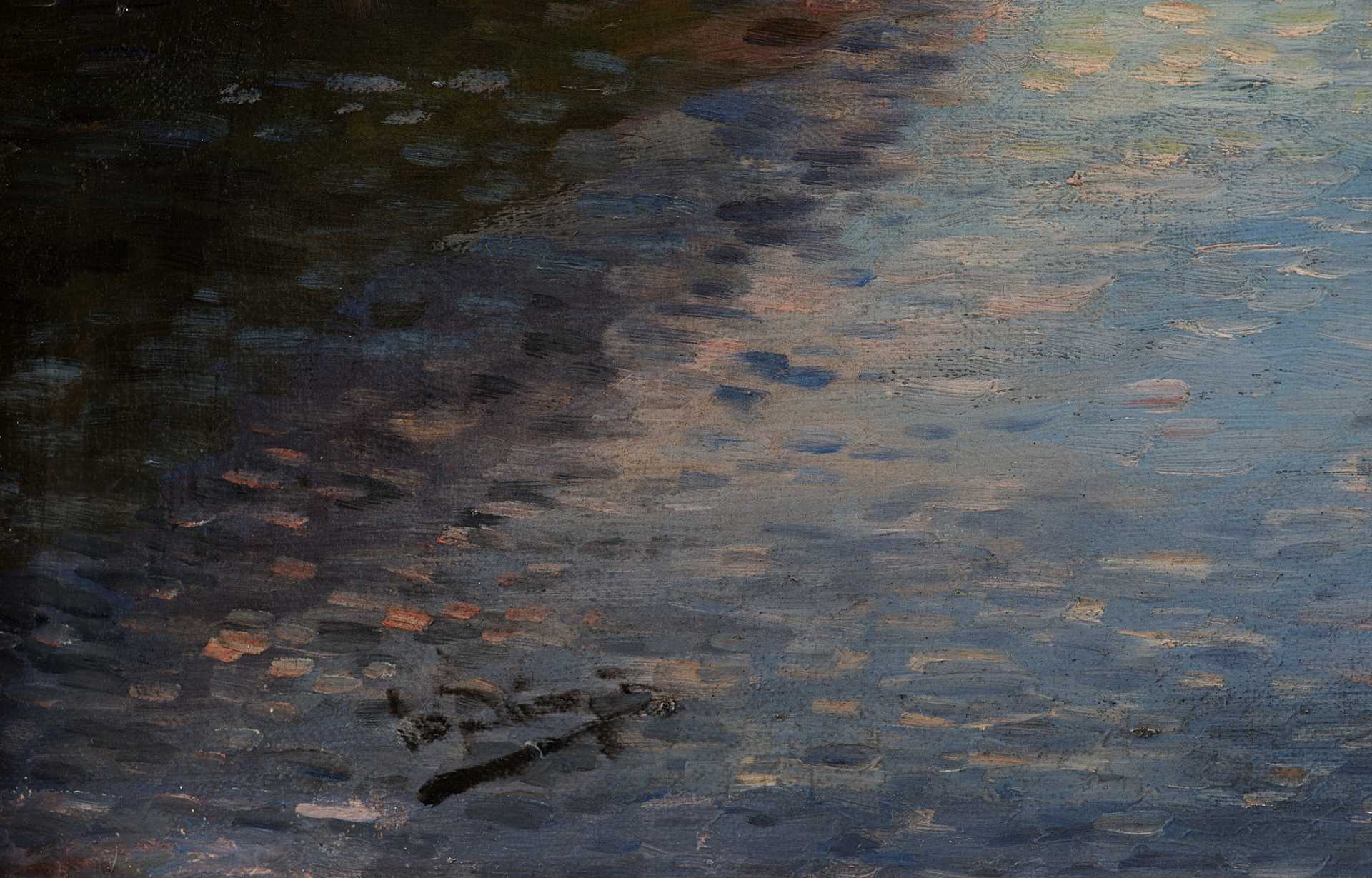 Композиция и живописная манера Плиссона сохраняют традиции французского пейзажного искусства, но сочетаются с индивидуальной интерпретацией северных ландшафтов. Картина отличается тонкой проработкой света и отражений на воде, использованием мягкого, но насыщенного колорита, подчёркивающего естественную красоту северной природы.