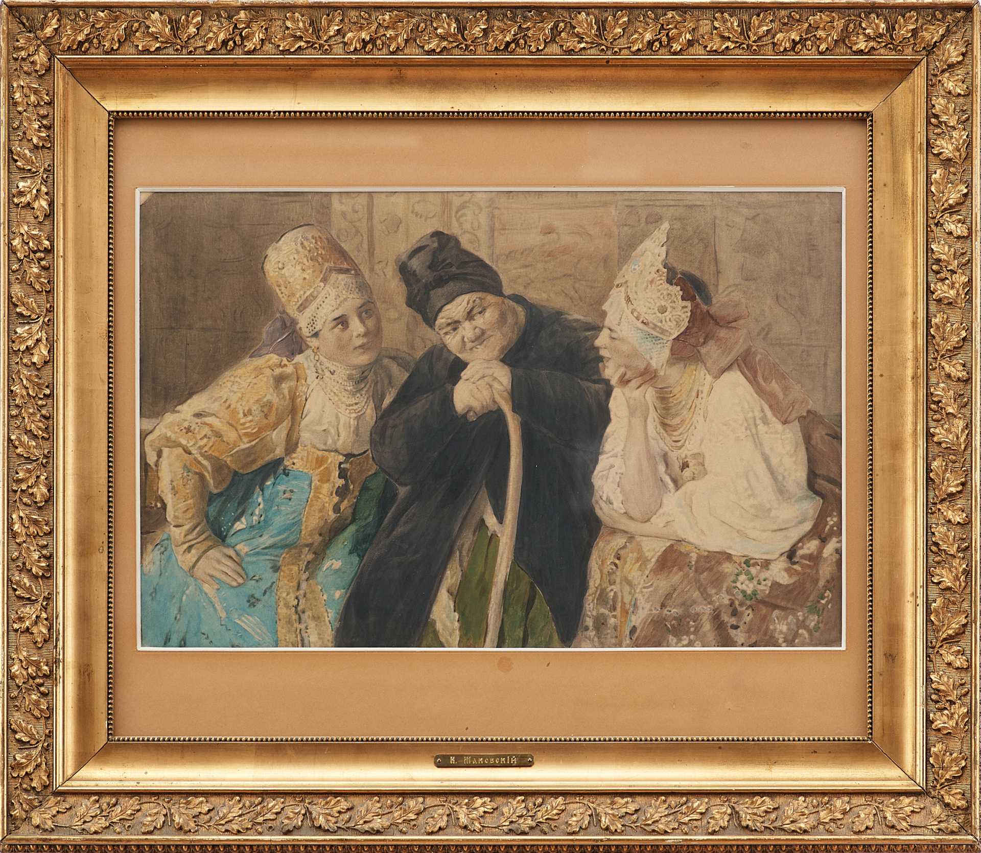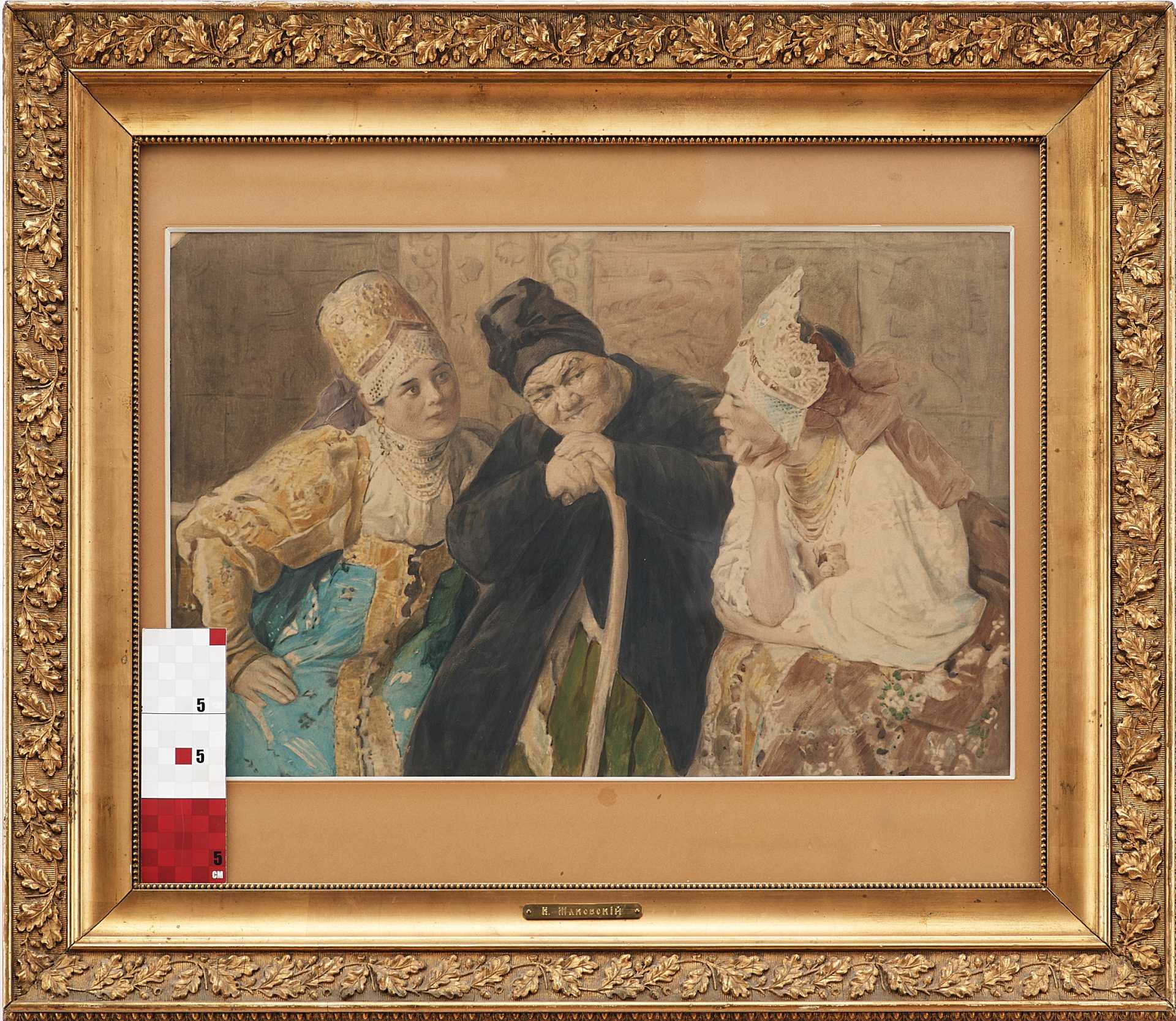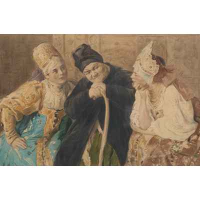 Константин Егорович Маковский (1839–1915) — живописец, мастер исторического и бытового жанра, представитель академической традиции, участник «бунта четырнадцати» и один из основателей Товарищества передвижных художественных выставок. Его творчество охватывало как сцены народной жизни, так и образы старинной России XVI–XVII веков, к которым он обратился в более поздний период. Картины Маковского пользовались большой популярностью, в том числе за рубежом, благодаря богатой декоративности, выразительной сценичности и визуальной повествовательности.