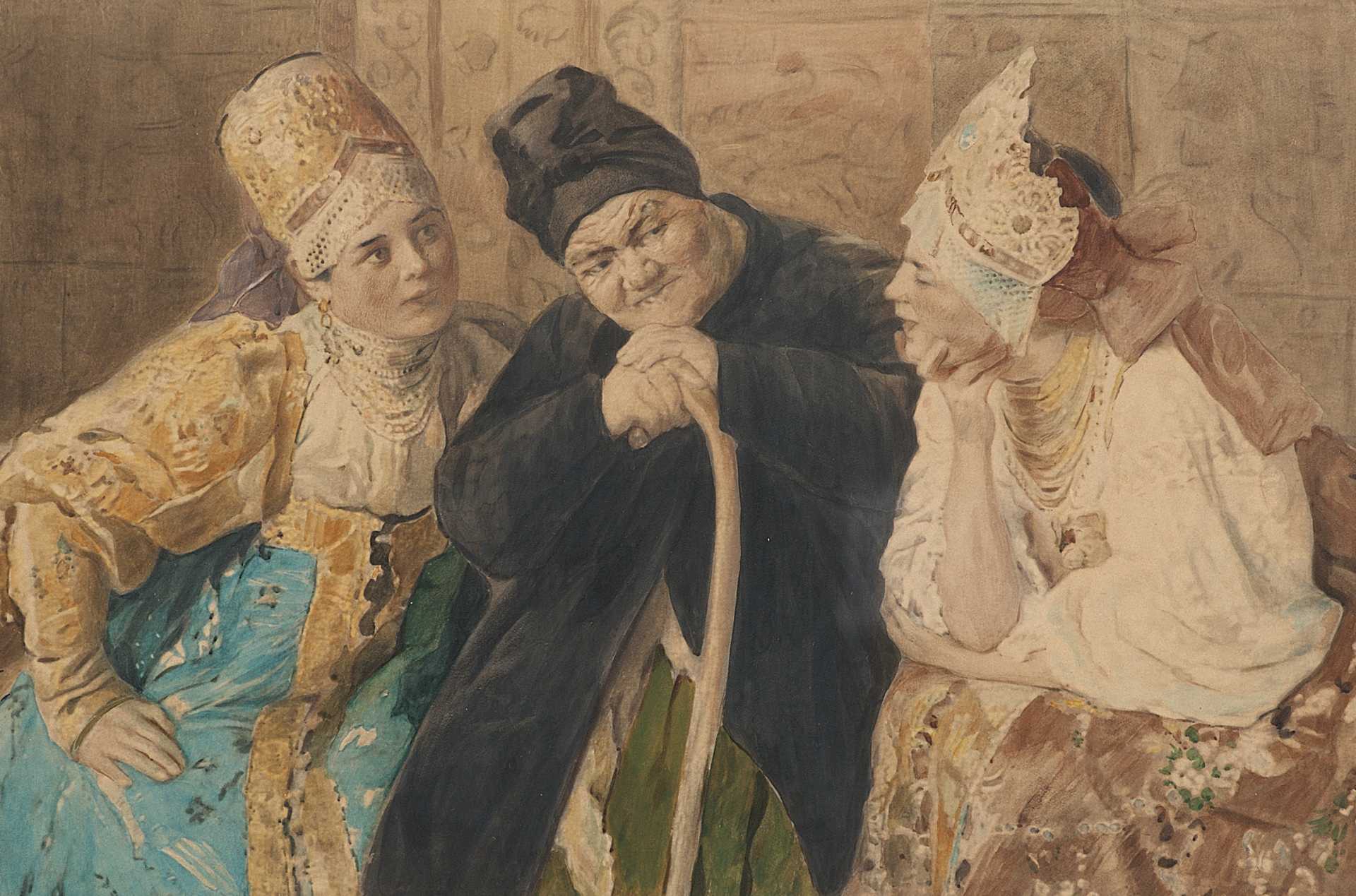 Изображённая сцена — пример типичного мотива русской жанровой живописи конца XIX — начала XX века, где акцент сделан на быту и характере. Такие работы пользовались спросом среди коллекционеров, особенно в среде русской эмиграции и ценителей национального колорита.