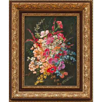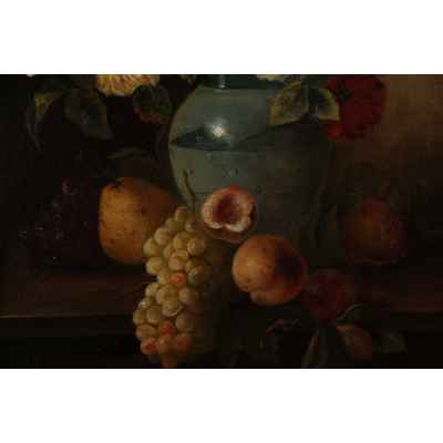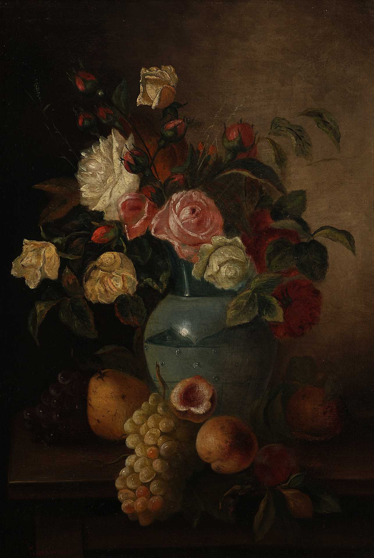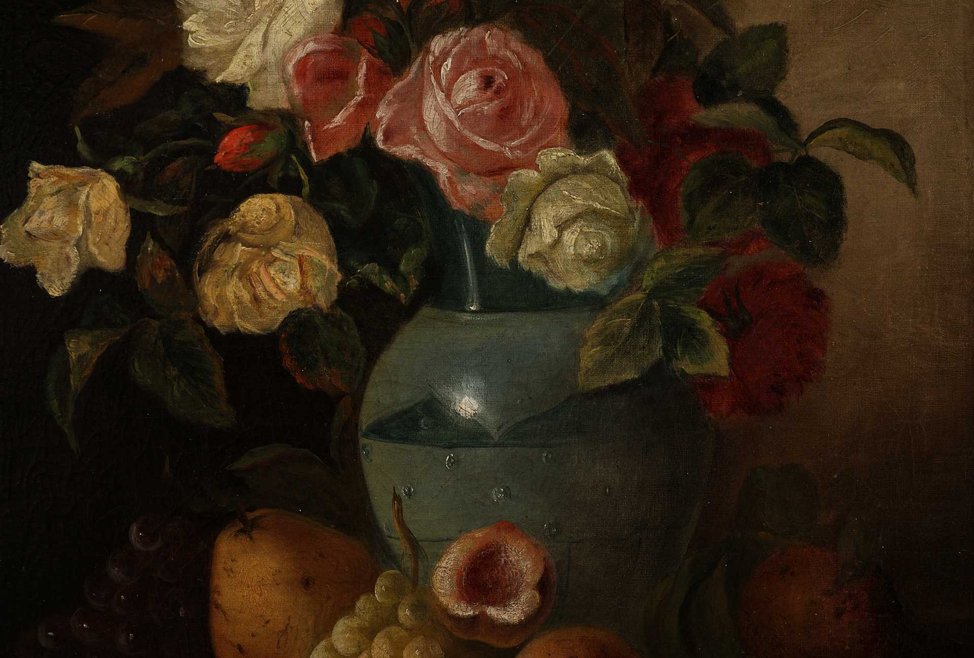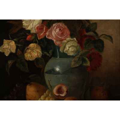 Картина «Букет роз и фрукты» является примером высокого уровня европейской академической живописи, ориентированной на эстетизацию повседневных объектов. Такие работы пользовались популярностью среди буржуазной публики конца XIX века и до сих пор востребованы на европейских аукционах.