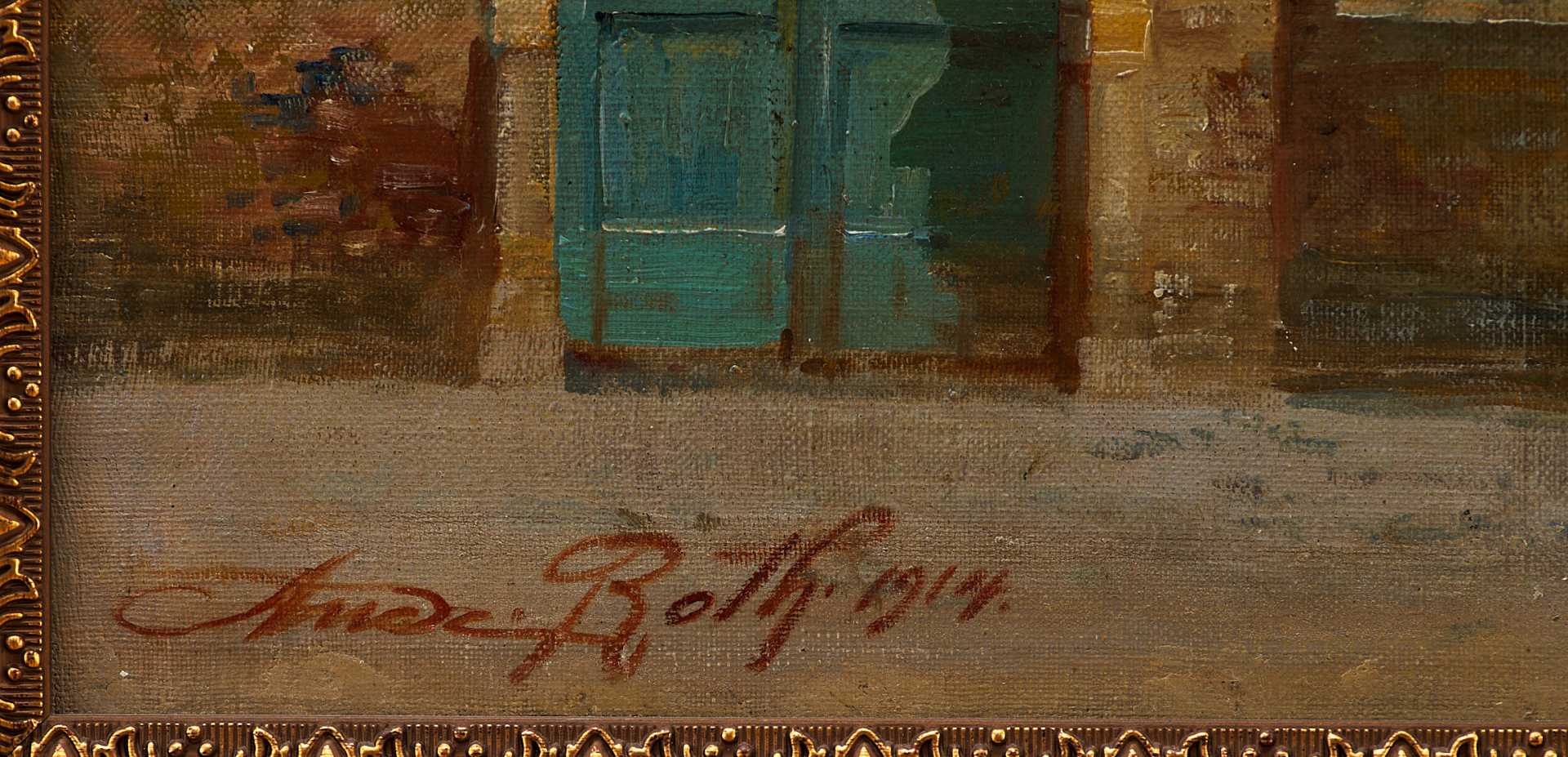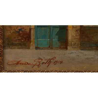 Анализ соотношения подписи с красочным слоем позволяет считать ее подлинной. Приемы изображения, манера письма, красочная палитра соответствуют принципам живописи художника в первую четверть XX века.