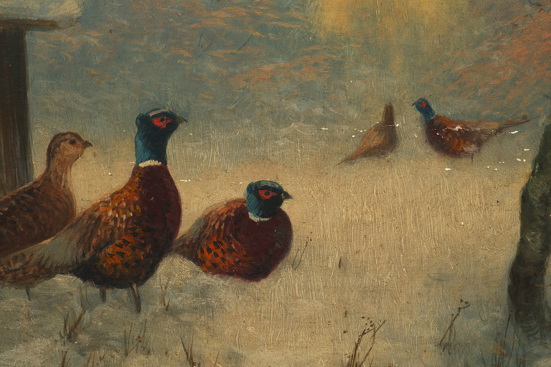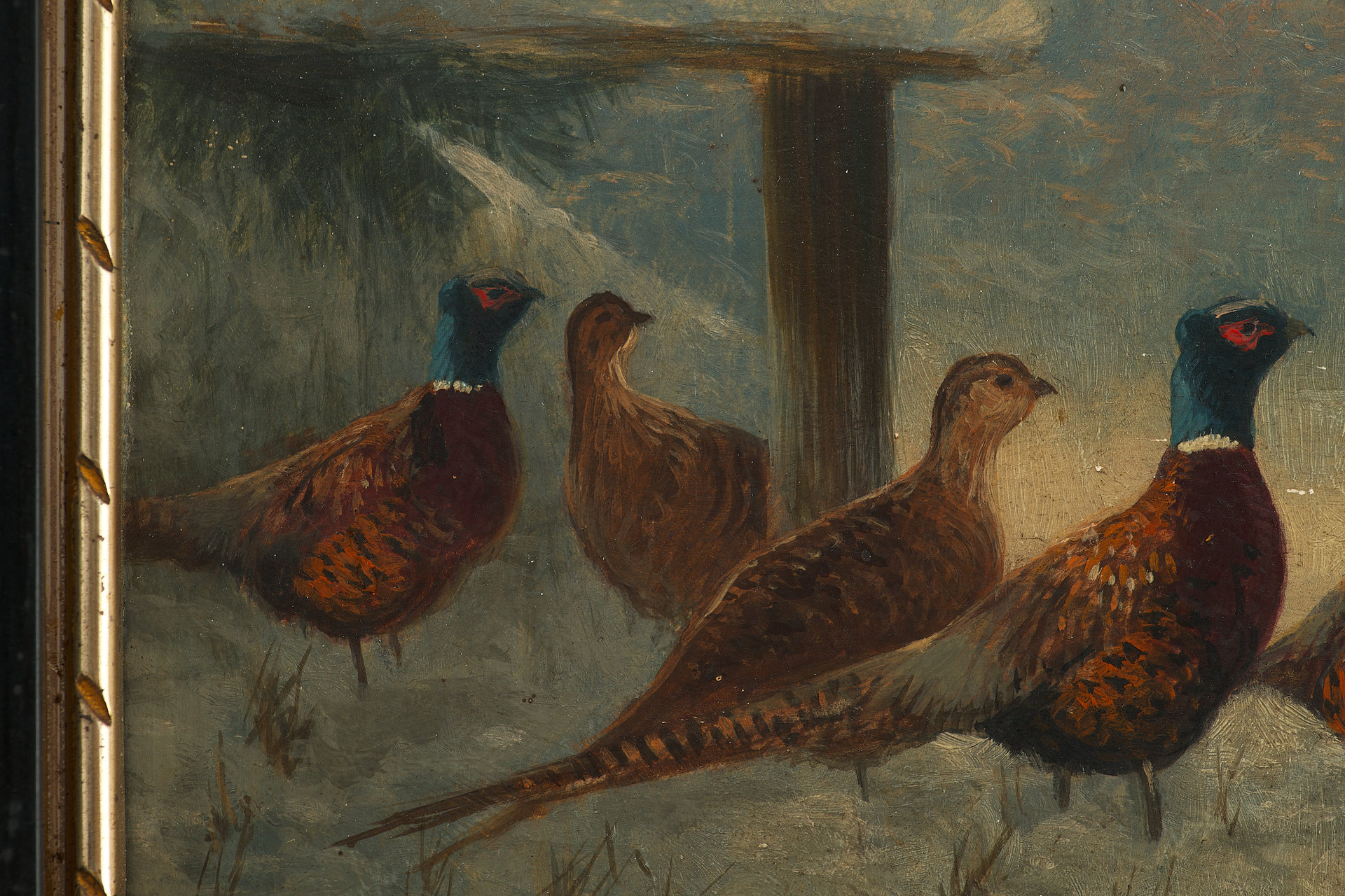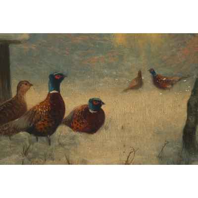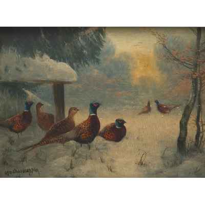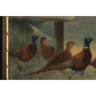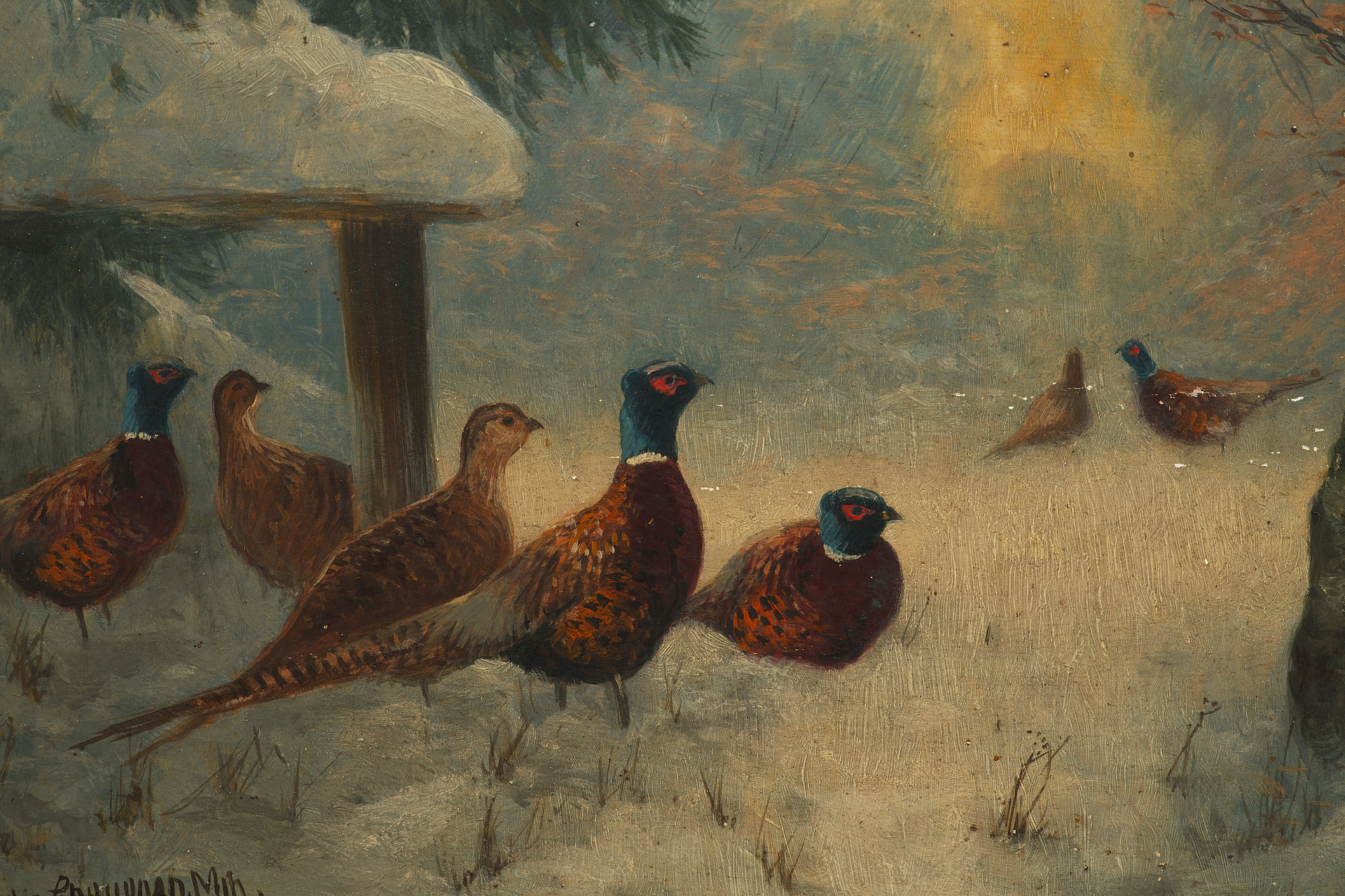 Картина «Зимний лес с фазанами» Германия конец XIX — начало XX вв