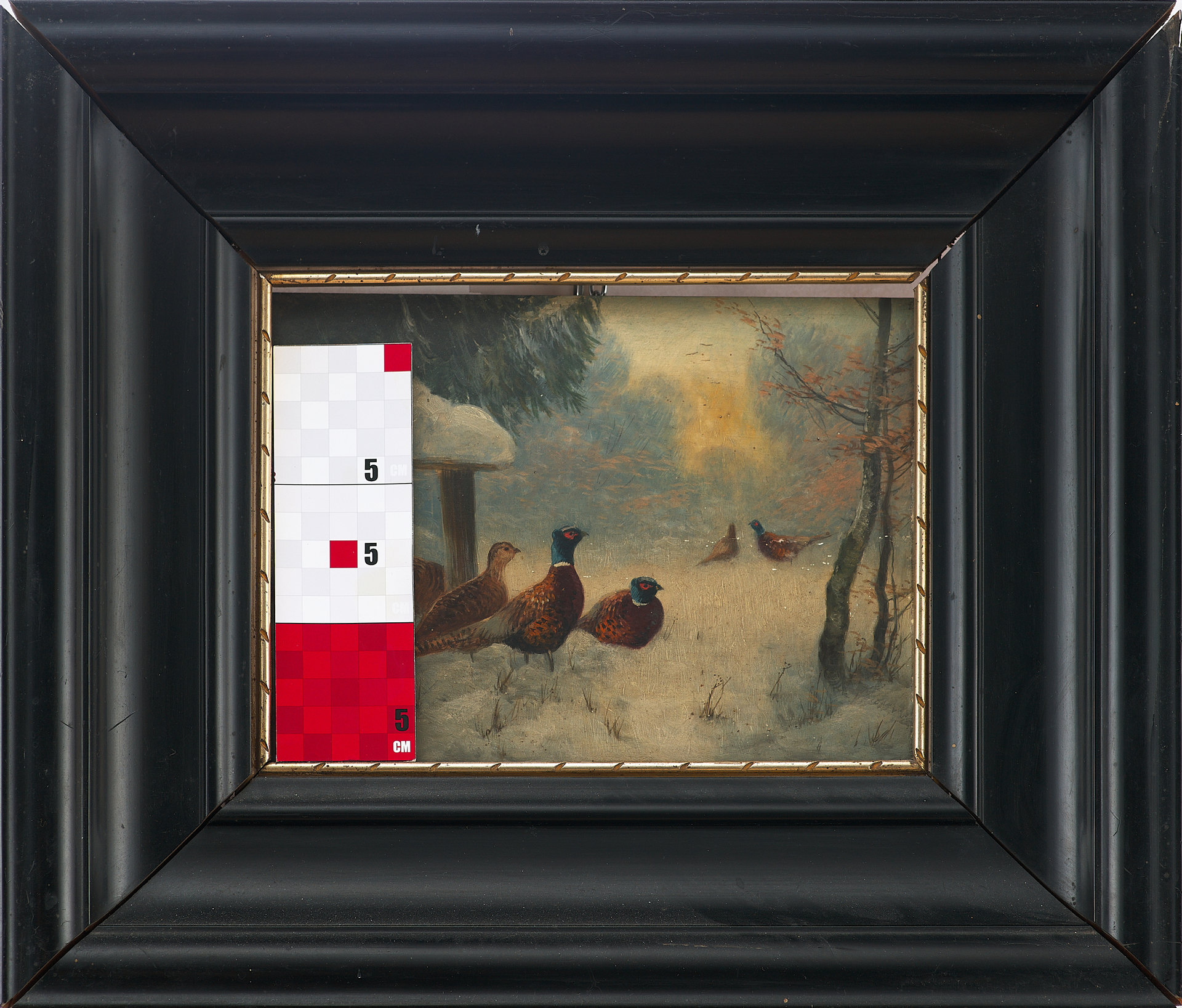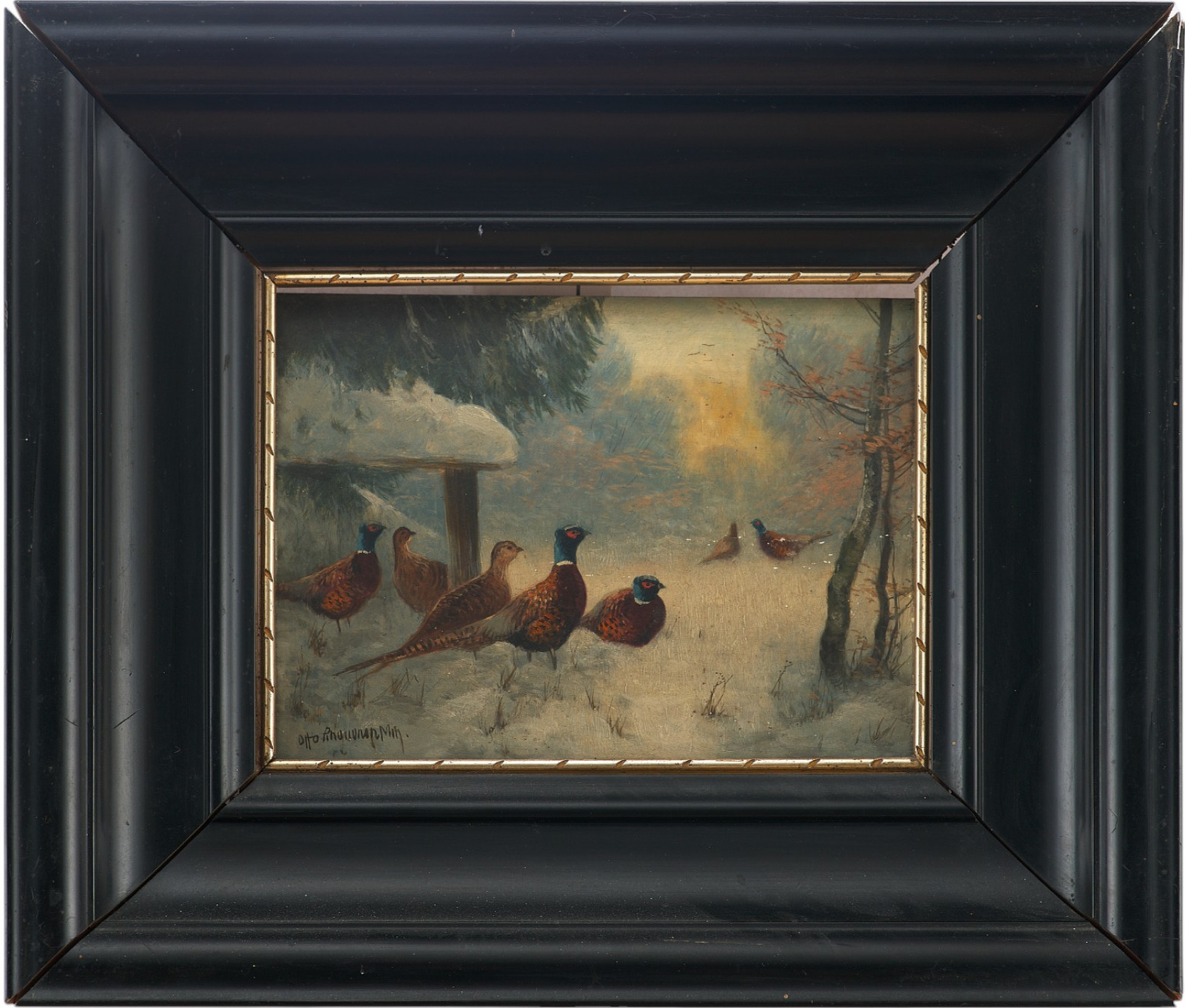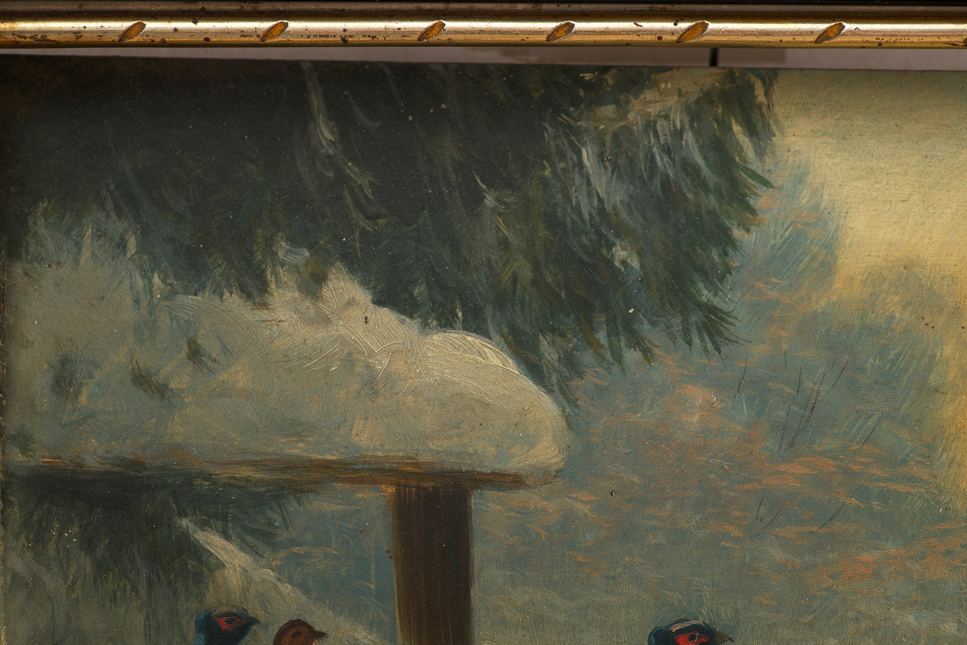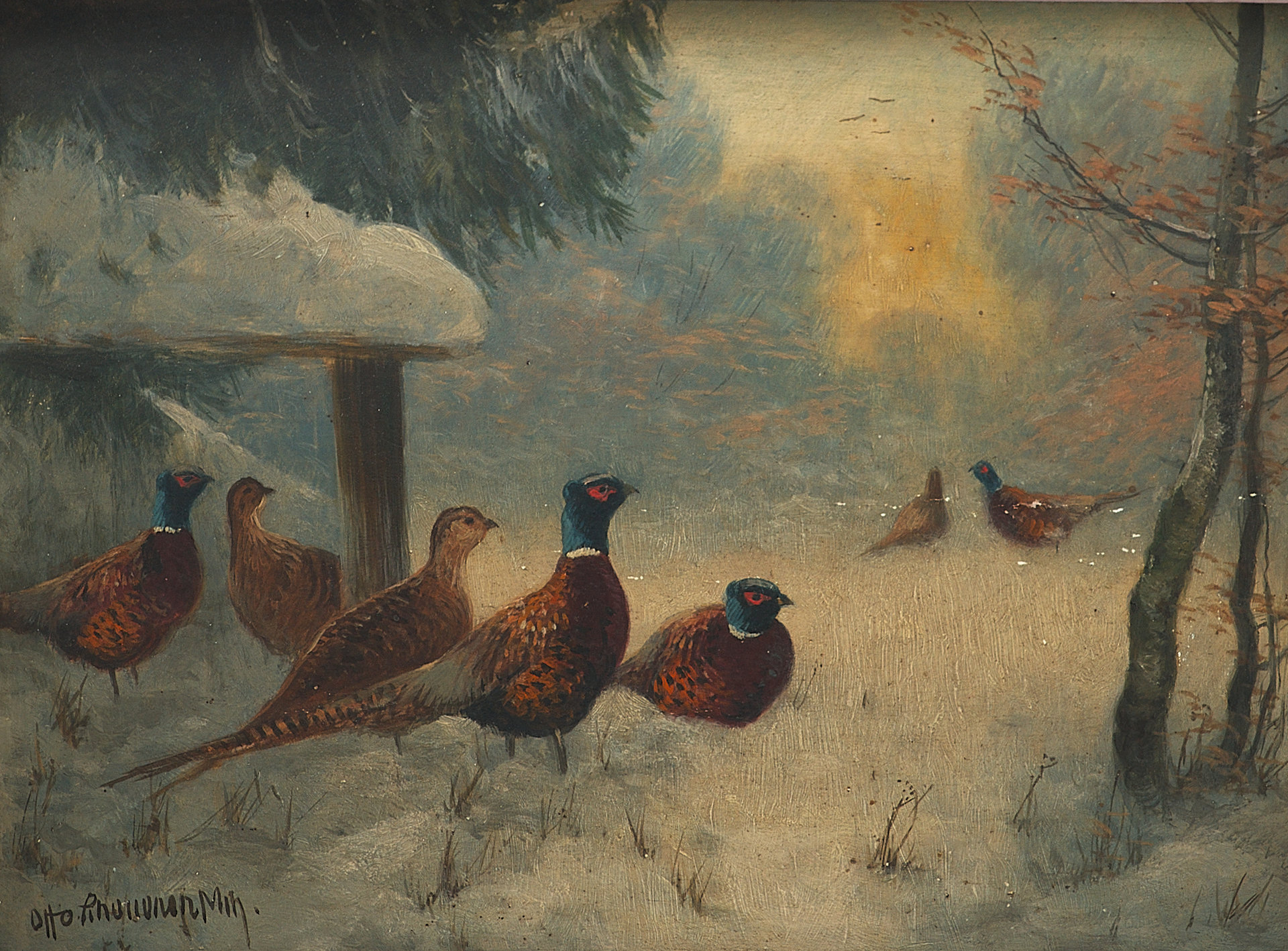 Картина «Зимний лес с фазанами» Германия конец XIX — начало XX вв