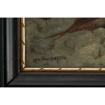 Работа выполнена немецким художником Отто Шойерером (Otto Scheuerer, 1862–1934), специализировавшимся на пейзажах и анималистических сценах. Он получил образование в Мюнхенской академии художеств у Карла Рауппа и большую часть жизни работал в Мюнхене. Шойерер особенно прославился сценами с птицами и охотничьими животными, в которых он сочетал реалистичную детализацию с художественной композицией.