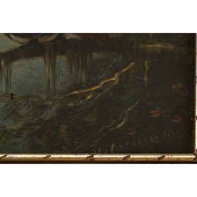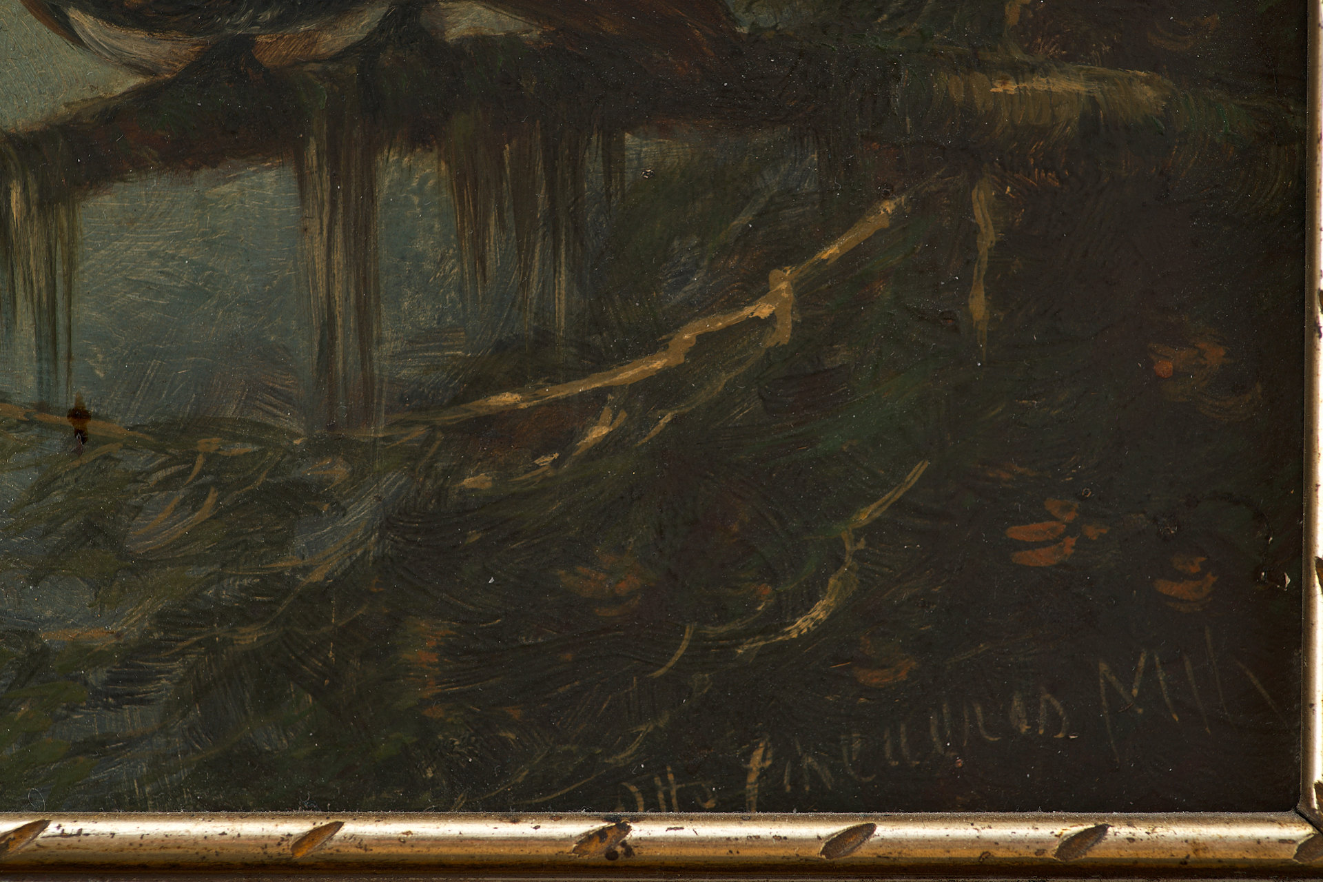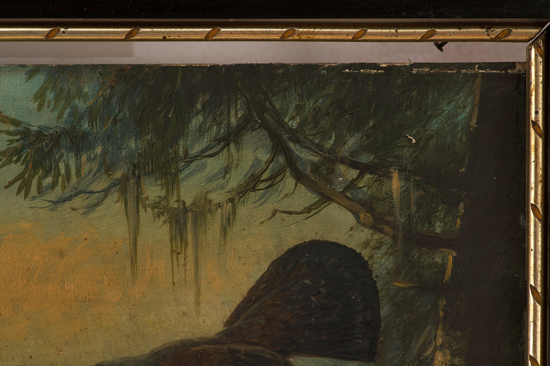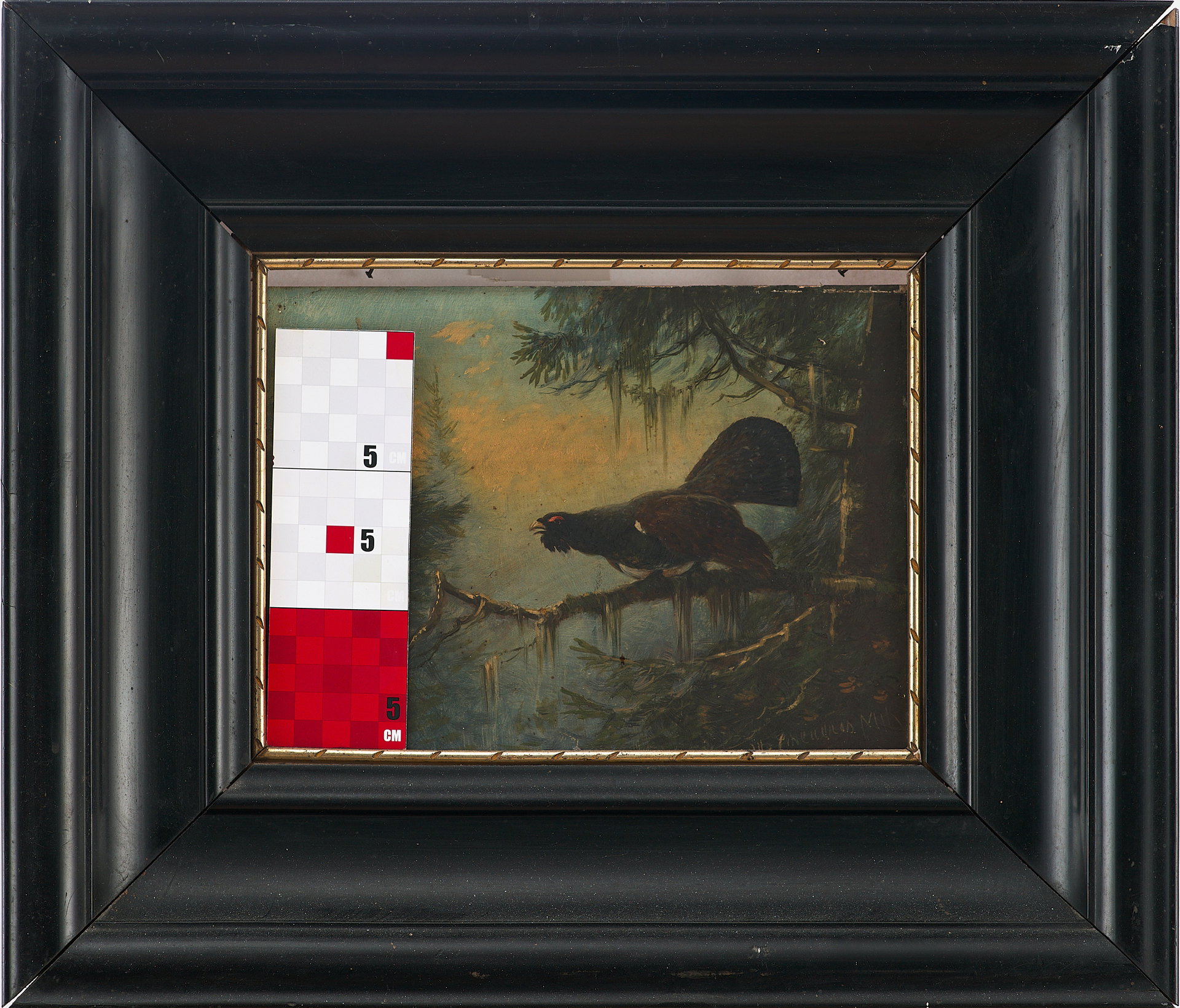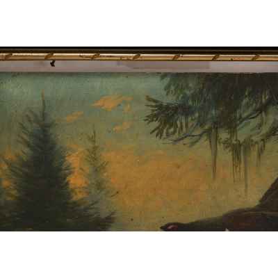 Изображённый глухарь — традиционный герой немецкой охотничьей и натуралистической живописи. Композиция передаёт напряжённую тишину утра и уединённость леса, в котором животное чувствует себя полноправным хозяином. Такая сцена могла быть как частью декоративного цикла в охотничьем зале, так и самостоятельной камерной работой для частной коллекции.