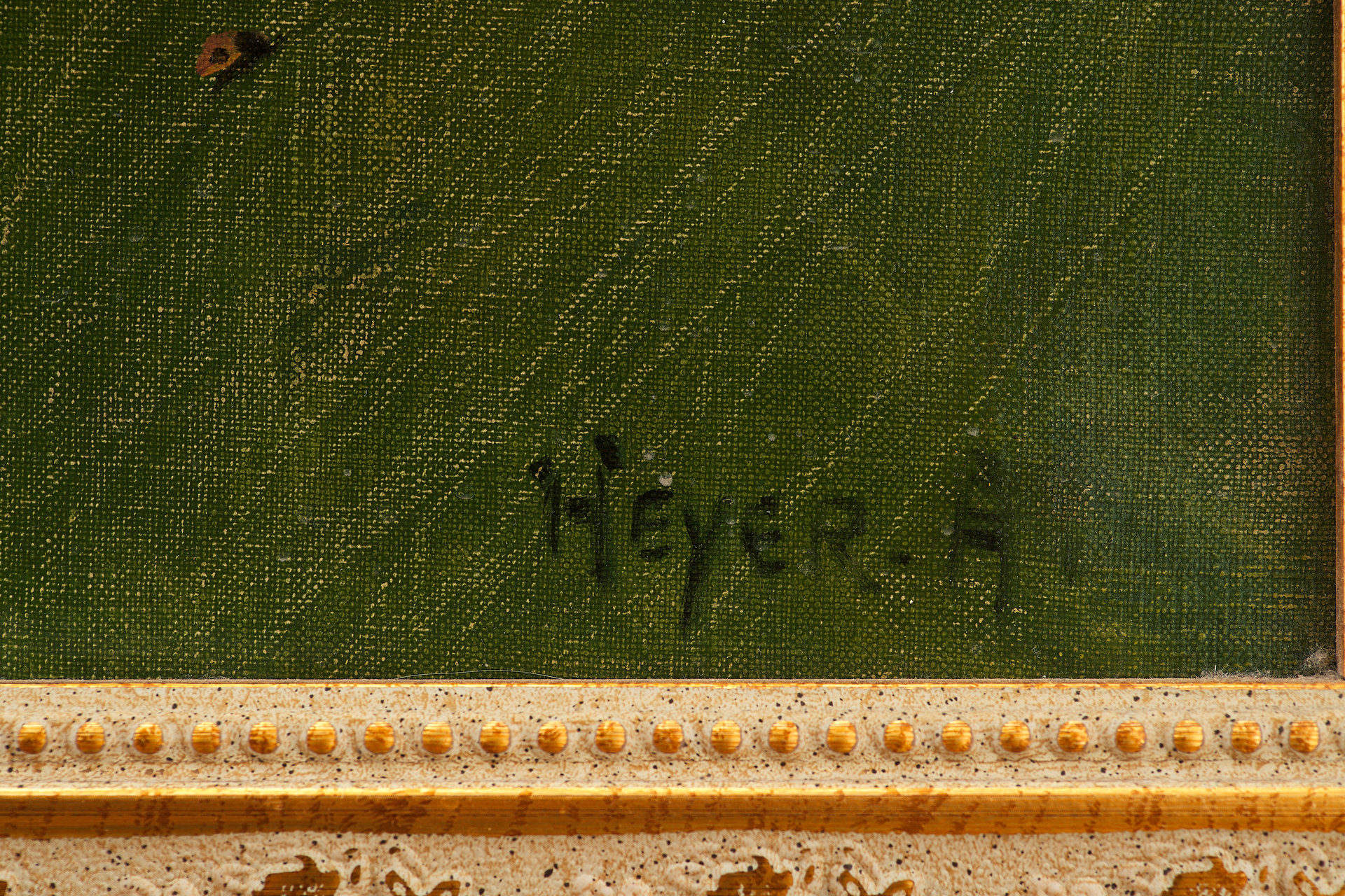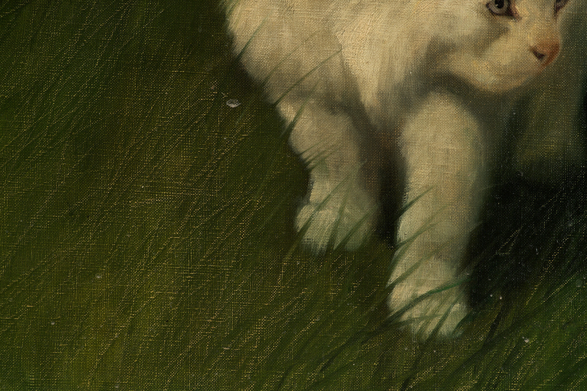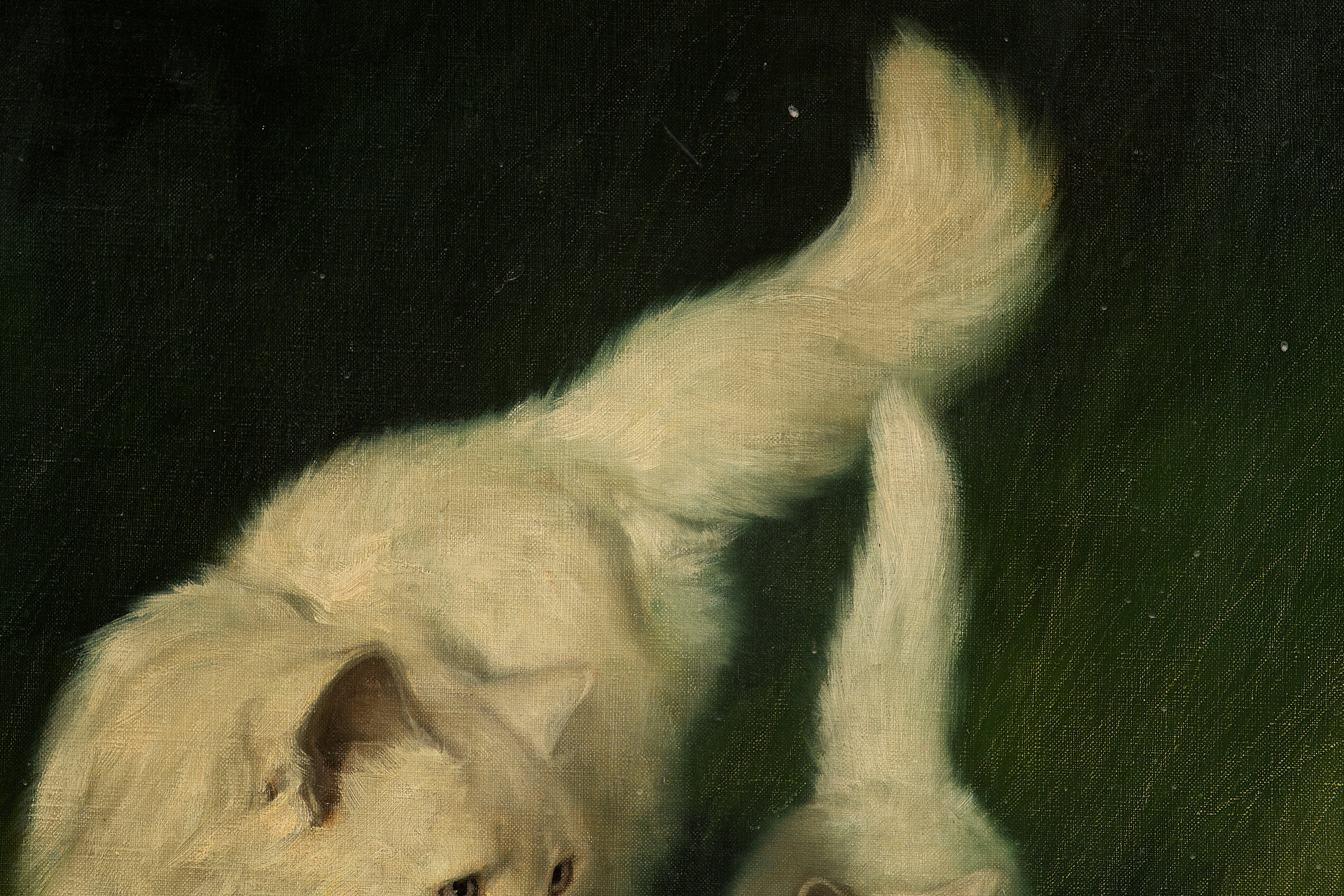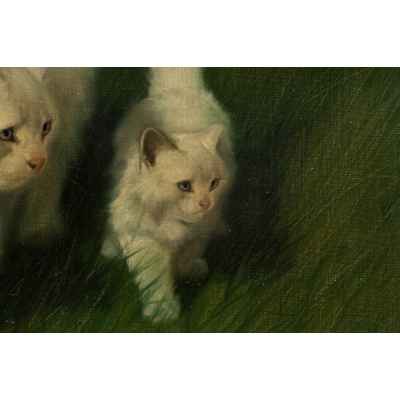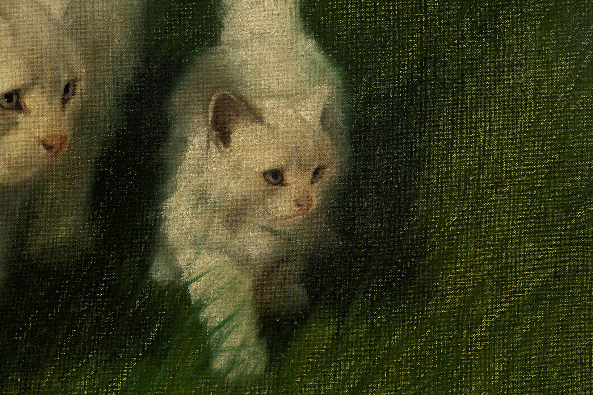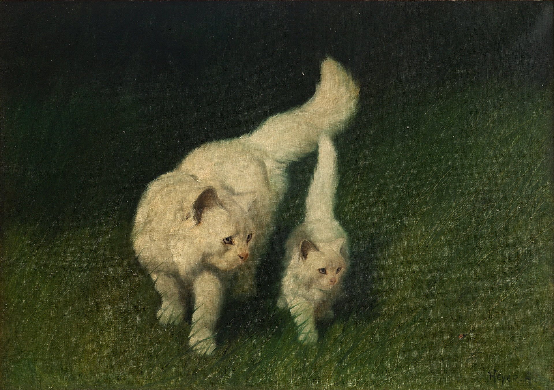 Автор полотна — Артур Хейер (Arthur Heyer, 1872–1931), немецко-венгерский живописец, известный своими работами в жанре анималистики, особенно изображениями кошек. Картина выполнена в первой четверти XX века в технике масляной живописи по холсту. Подпись художника — Heyer A. — находится в правом нижнем углу и аутентична живописному слою.