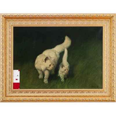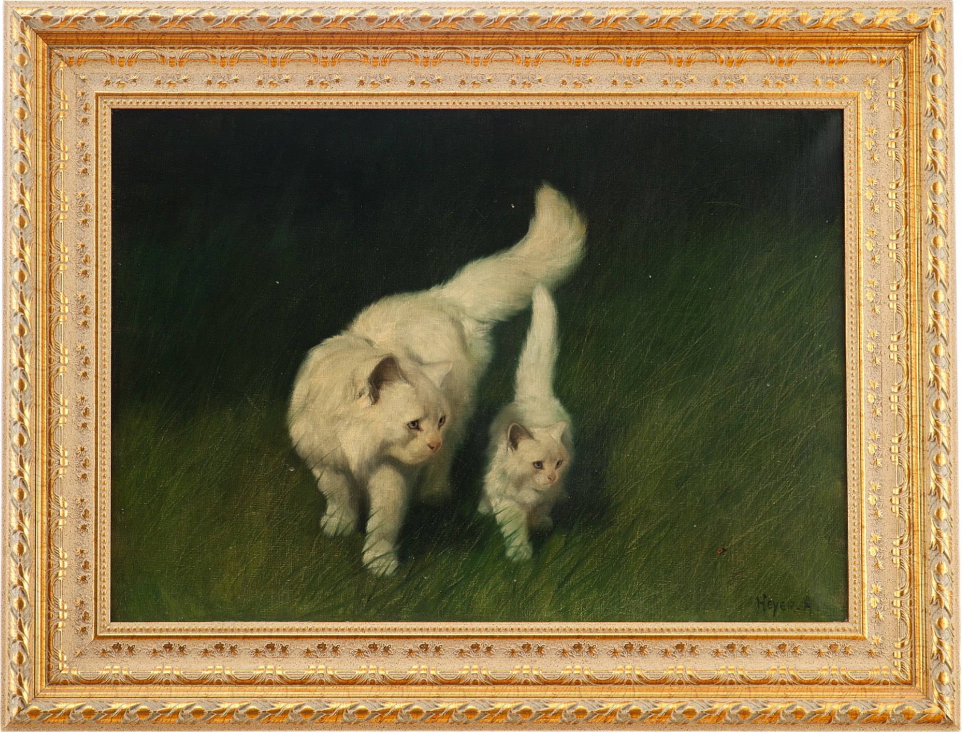 Артур Хейер (Arthur Heyer) картина Кошачья охота х/м нач. ХХ в. 49,5x70,5 см. Европа первая четверть ХХ века