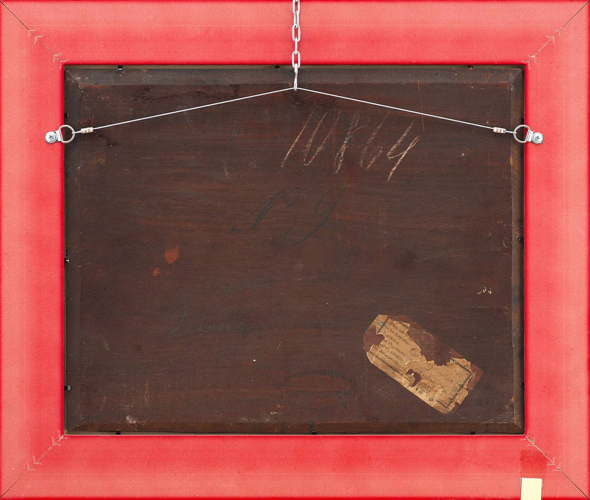 На обороте имеется штамп и бумажная этикетка. Использованные в картине материалы соответствуют указанному времени её создания. Мотив, колорит и индивидуальная живописная манера соответствуют принципам живописи немецкого живописца Эдуарда Лейтнера фон Лихгенфельса.
