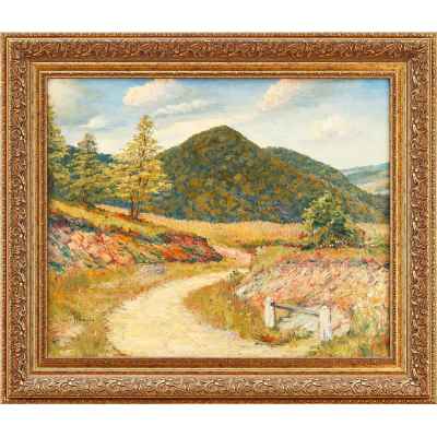 Хотя подпись на картине отсутствует, живописная манера и соответствие стилистическим признакам мастера позволяют атрибутировать работу с высокой долей уверенности. Размер картины — 15,7×29,0 см, что также указывает на её декоративно-кабинетный характер — она предназначалась для интерьерного размещения в частной коллекции.
