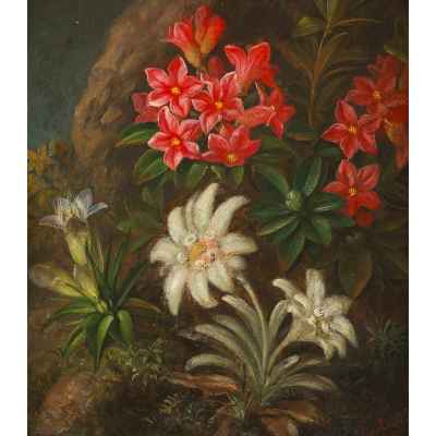 Картина "Цветочная композиция из лилейников" Австрия 1872