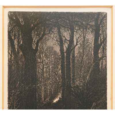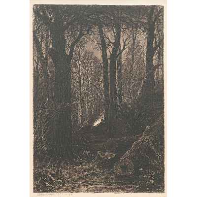 В семидесятых годах Шишкин все серьезнее увлекается офортом. Техника глубокой печати, позволяющая свободно рисовать без каких-либо физических усилий, оказалась ему особенно близка - он мог сохранить свободную и живую манеру линейно-штрихового рисунка. В то время как многие художники использовали офорт для репродуцирования своих картин, для Шишкина искусство офорта стало самостоятельной и важной областью творчества. Стилистически близкие его живописным произведениям, сочные эстампы художника отличаются выразительностью образного строя и удивительной тонкостью исполнения. Шишкин выпускал эстампы то отдельными листами, то целыми сериями, которые он объединял в альбомы, пользовавшиеся большим успехом.