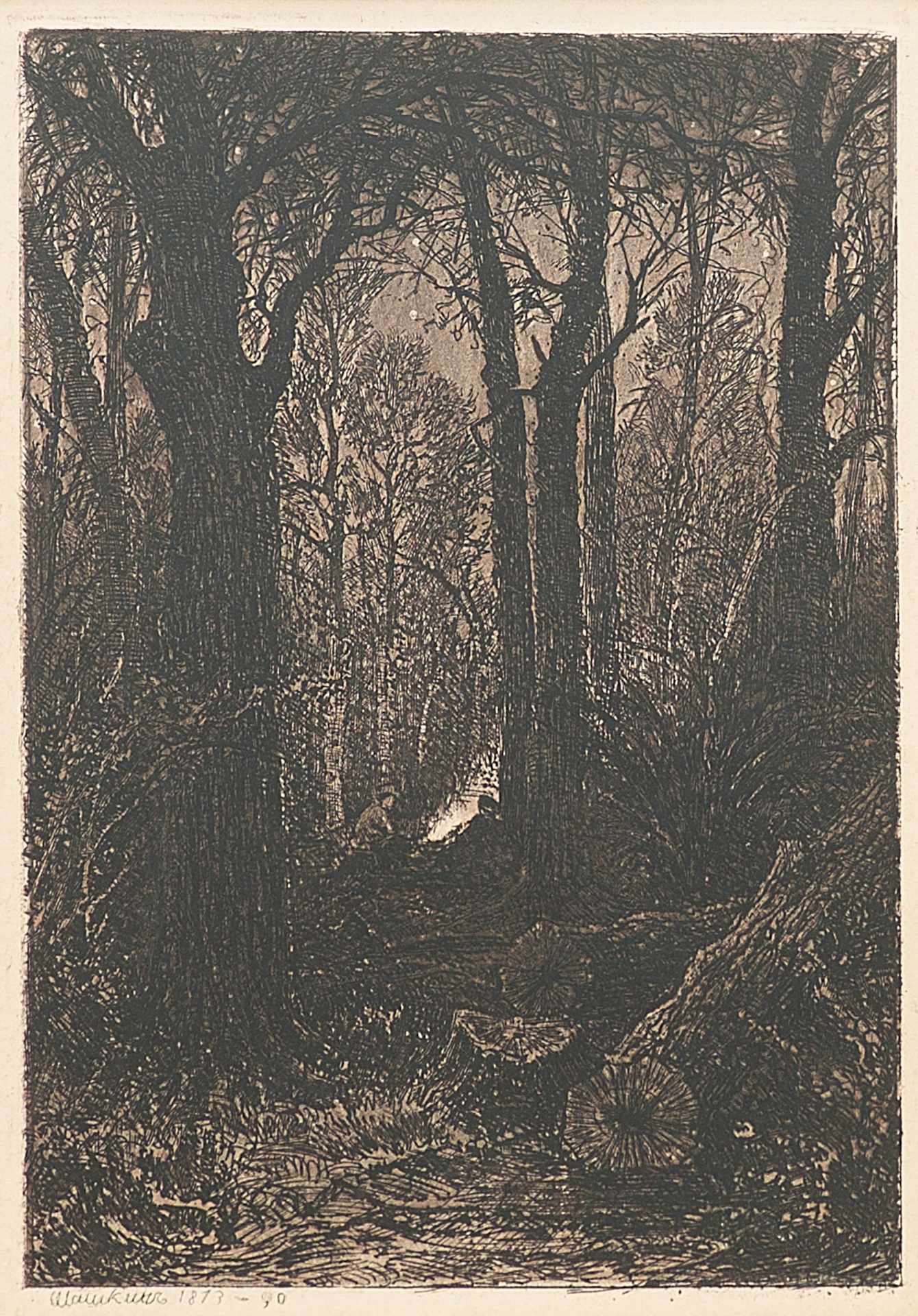 Шишкин И.И. Авторский офорт У костра 1873 г. 15,7x11,2 см. Россия 1873