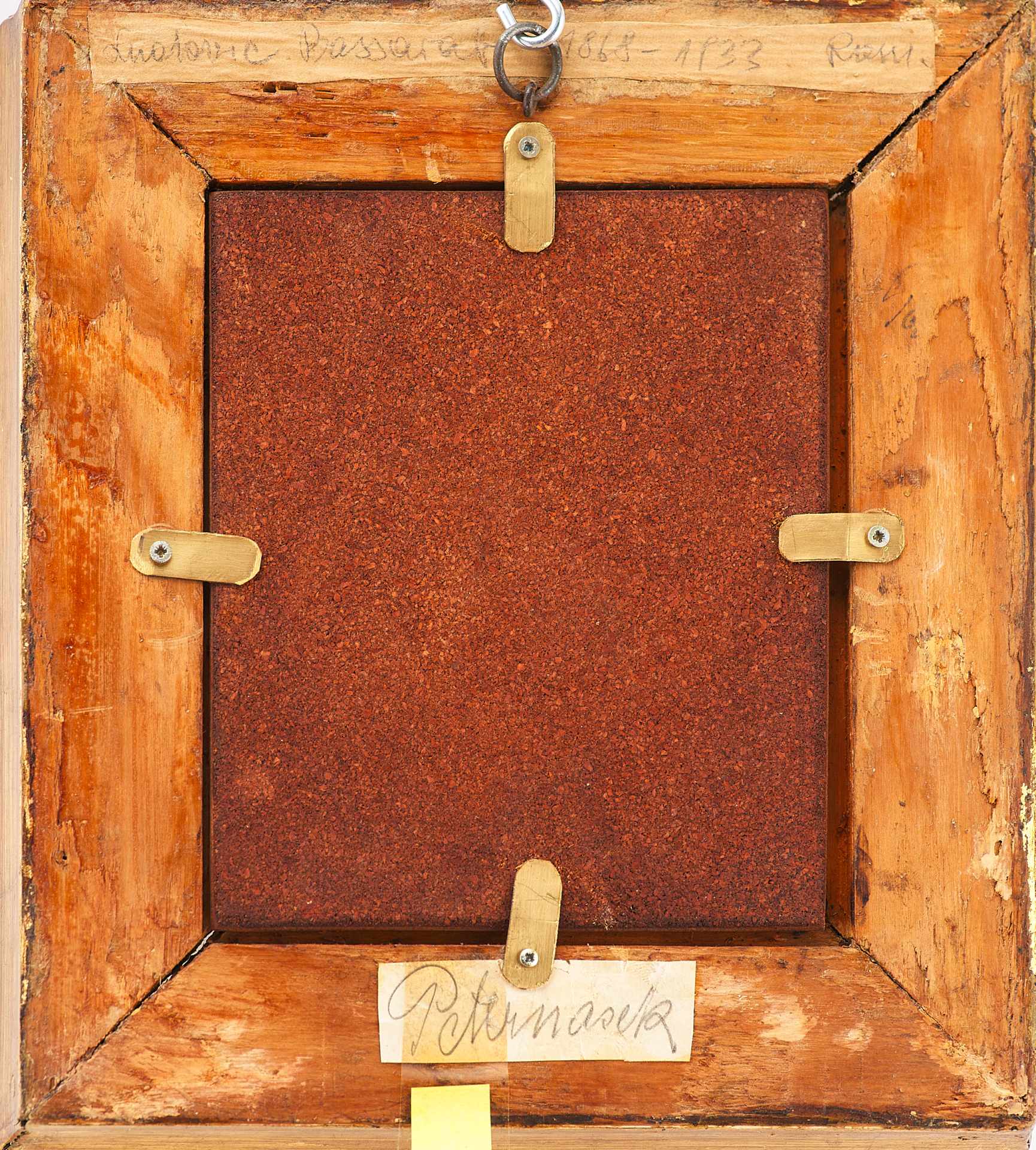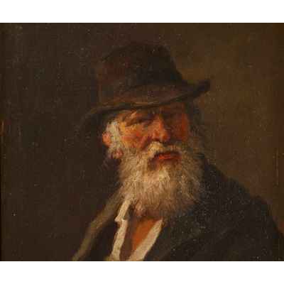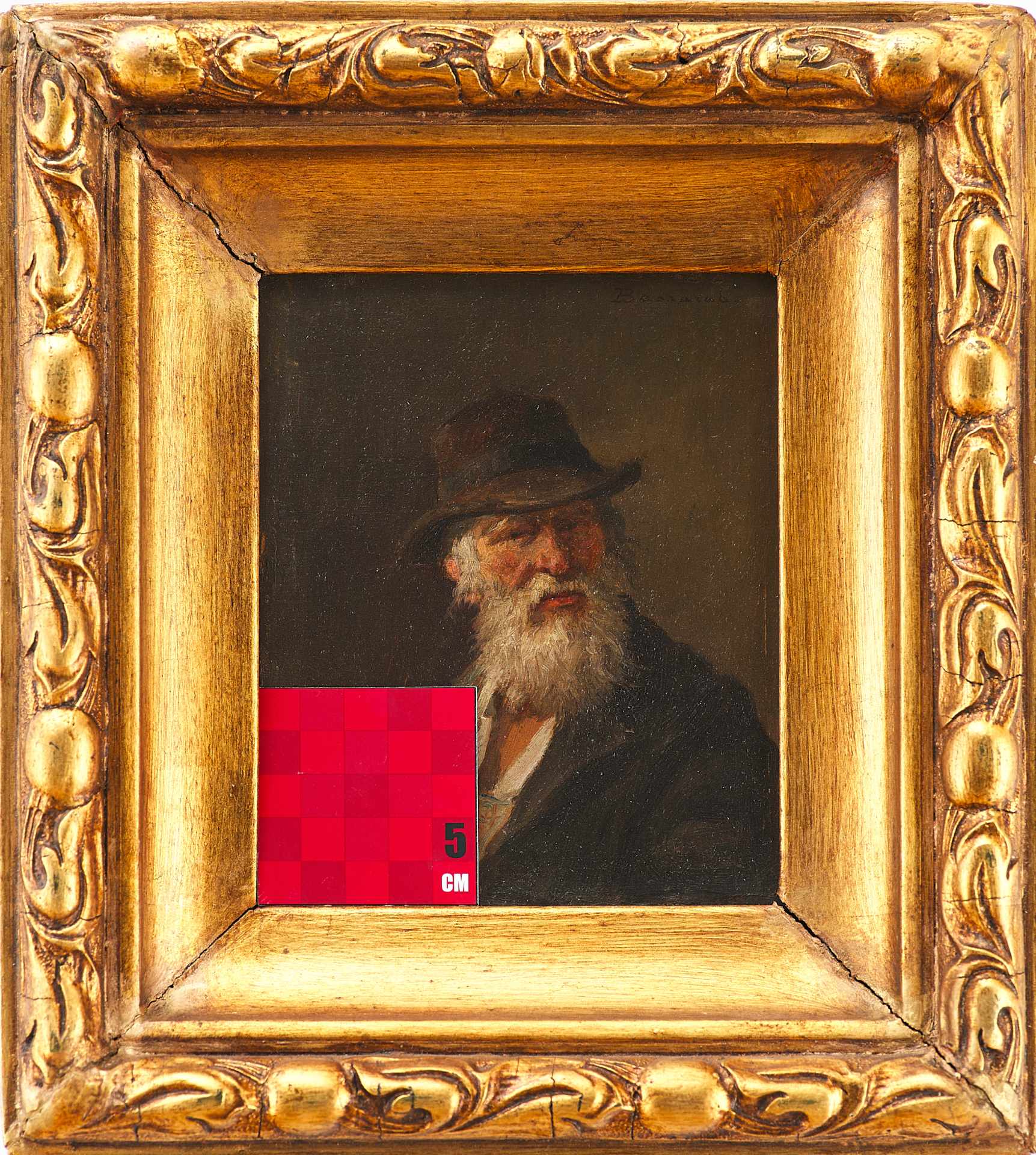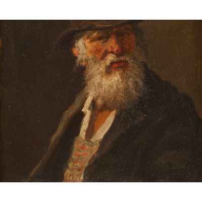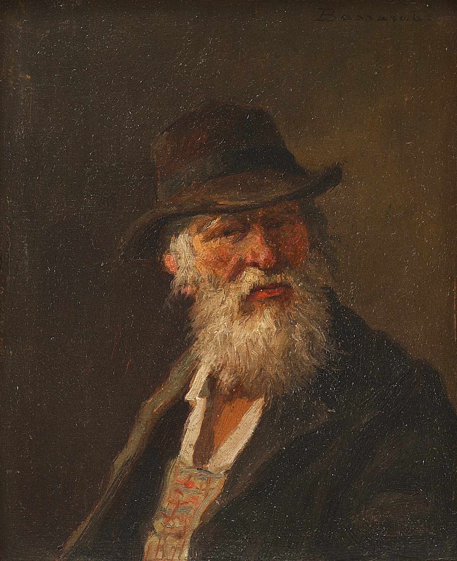 Людовик Бассараб (1866, Галац- 1933). Румынский художник. Живописец. Портретист, жанрист. В своих работах он изображал живого, реального человека с его характером, чувствами и мыслями, нравственную красоту людей из народа, величие и поэзию родной природы. Работы: Интерьер церкви, Воскресная служба, На улице села, Хороший совет, Праздник, Полдень в поле, Гумно, Навстречу ярмарке, В долине Олт, Пейзаж с овчарней в долине Прахова, В трактире. Портреты: Торговец специями, Генри Тулуз Лотрек, Цыганка, Дровосек, Со стаканом. Состояние живописных материалов исследуемой работы, позволяет датировать ее концом XIX века. Работа выполнена на профессиональном уровне и представляет интерес для частных собраний.