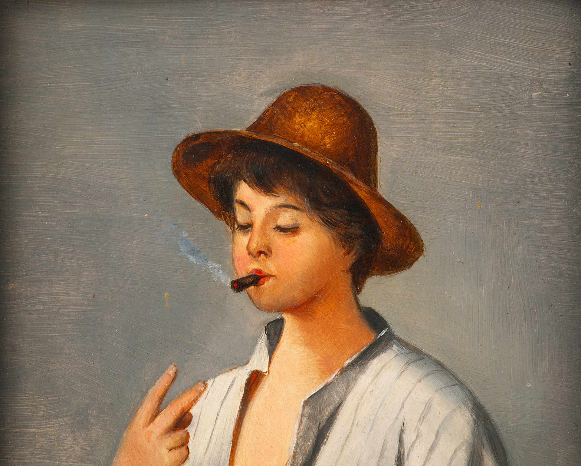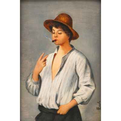 Картина «Курящий мальчик» Австрия Начало XX века