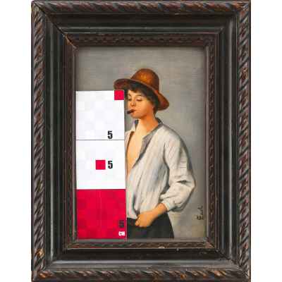 На светло-сером фоне изображён подросток с сигарой. Видно, что он неопытный курильщик, так как все его внимание сосредоточено на дымящейся сигаре. Правая рука, с двумя манерно растопыренными пальцами, тянущаяся к сигаре демонстрирует его желание походить на взрослого человека, о чем также говорит его вальяжная поза и светлая рубаха, небрежно заправленная и глубоко расстёгнутая.