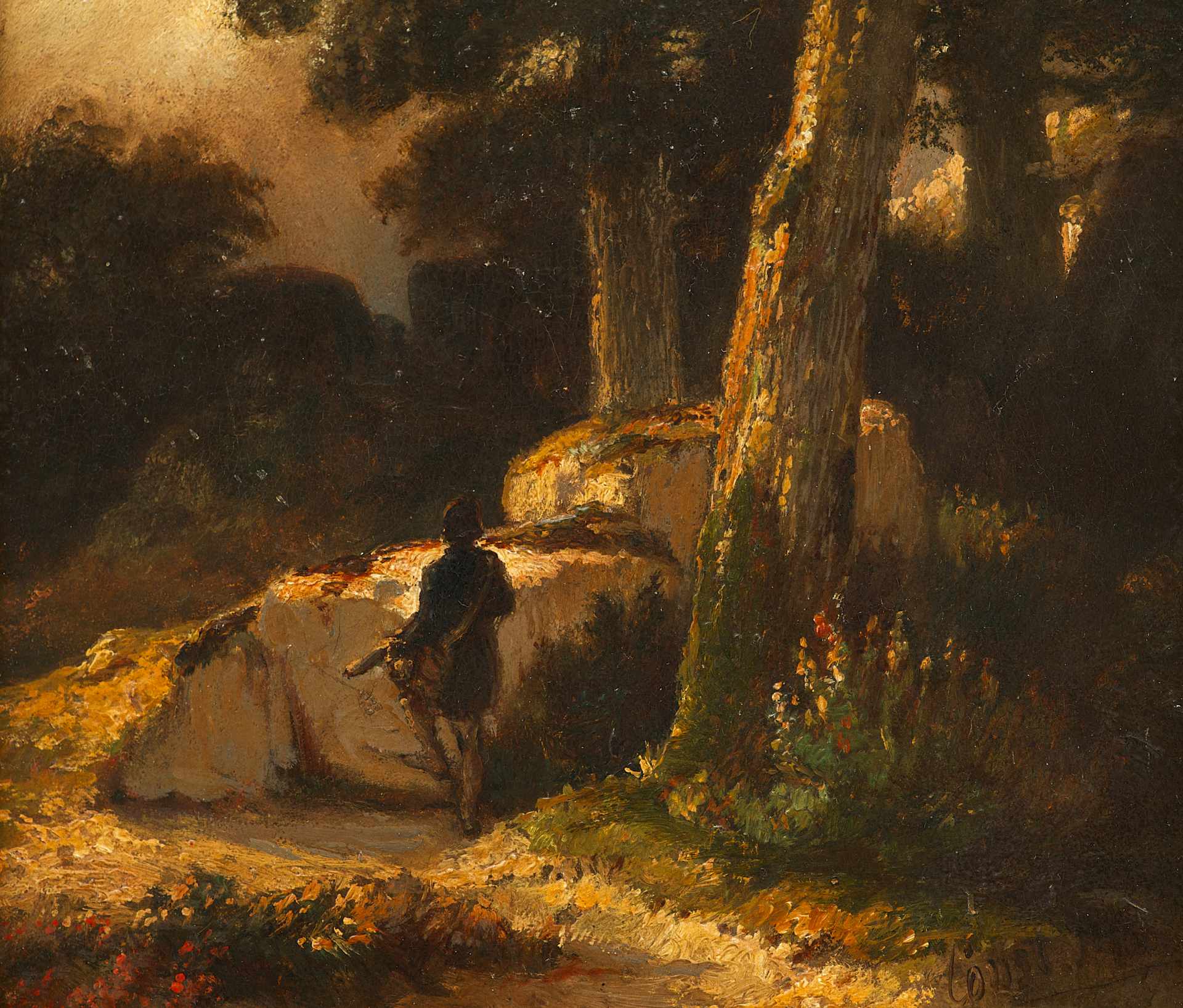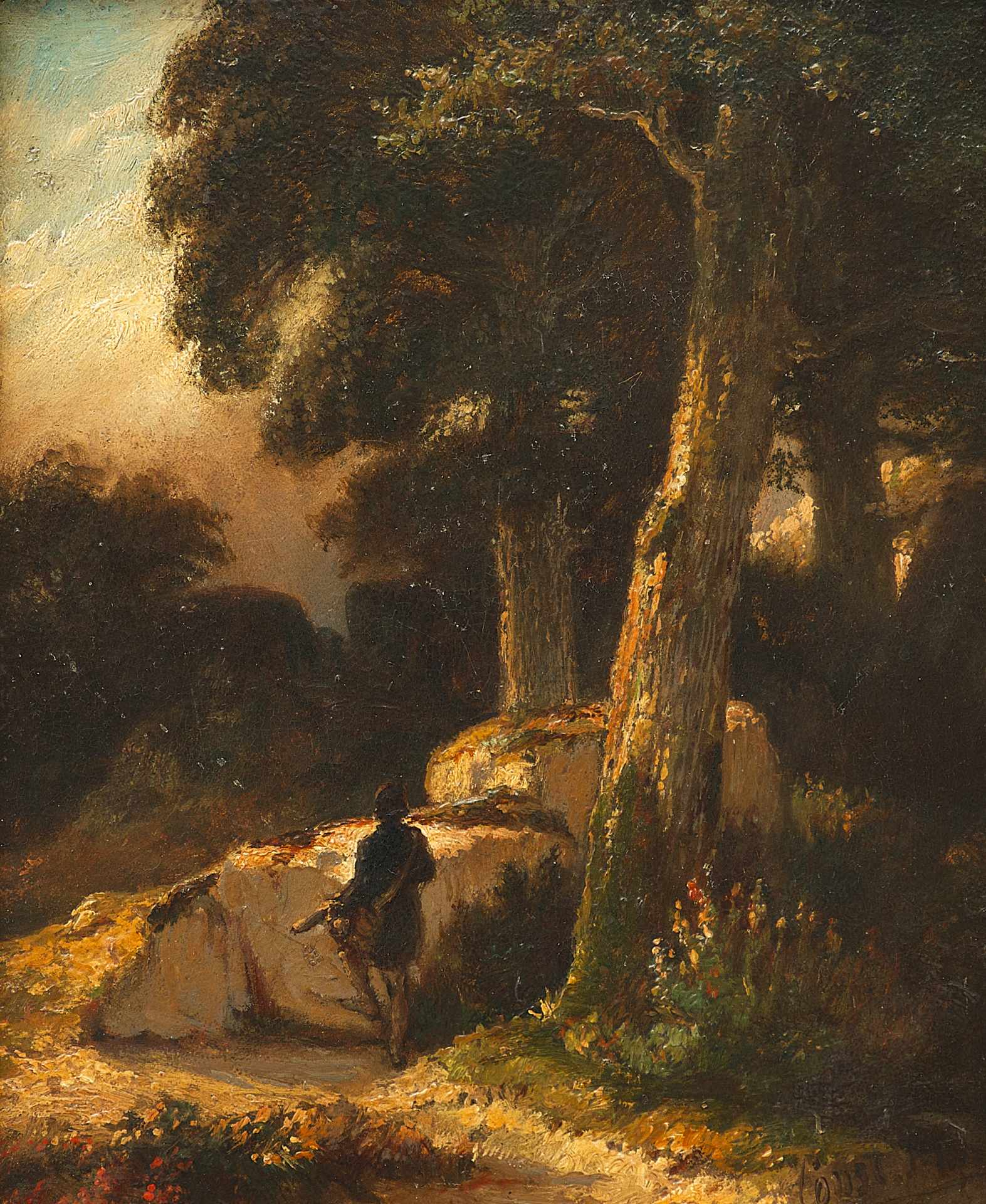 Сonstantin Muller 2-я -половина XIX века.Немецкий художник. Живописец, портретист, пейзажист. Его образы природы спокойны и повествовательны. Внимание художника привлекают фрагменты природы: ствол дерева, замшелые валуны, трепещущая на ветвях листва. Работа выполнена на высоком профессиональном уровне и представляет интерес для частных собраний.