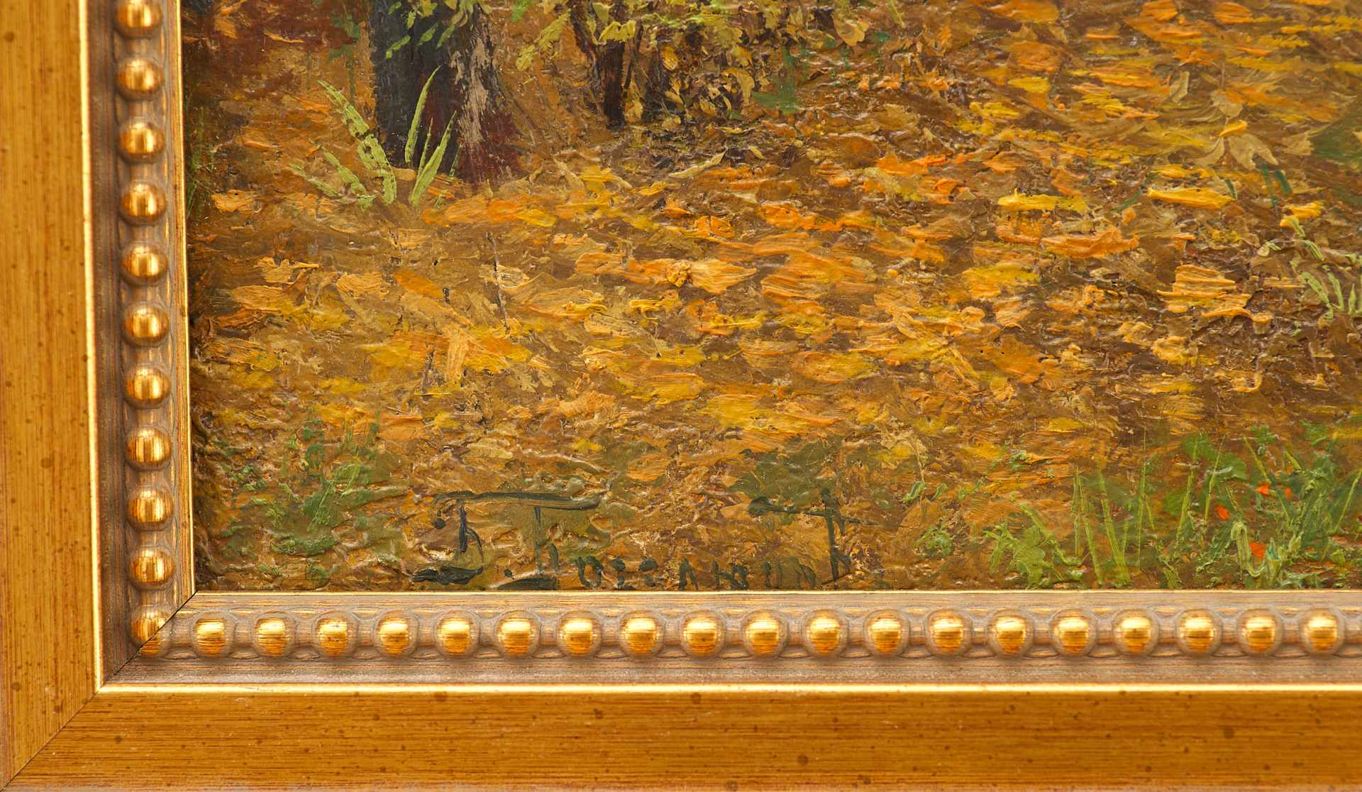 Слева внизу подпись: «Б. Боголюбовъ». Подпись соответствует автографам художника на других его произведениях, представленных в музейных и частных собраниях. Приемы изображения, рисунок, композиция, палитра соответствуют принципам письма русского живописца Б. Боголюбова. Состояние живописных материалов исследуемой работы не противоречит указанной датировке. Работа выполнена на высоком профессиональном уровне и представляет интерес для частных собраний.