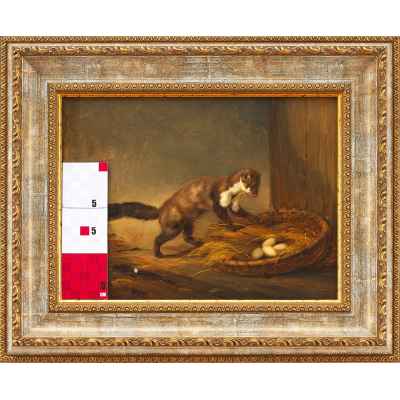 Как отдельное течение в живописи она появляется во второй половине XIX века, после того, как в первой и, в особенности во второй четверти этого столетия, широкое развитие получает жанровая картина. В таких картинах животное - смысловой центр и непременный участник происходящего. Мотив исследуемого произведения, композиция, колорит и живописная манера соответствуют работам этого автора, имеющимся в многочисленных европейских музейных и частных собраниях. Работа выполнена на высоком рофессиональном