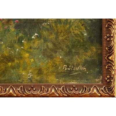 Справа внизу авторская подпись: А. Stadler. Мотив и индивидуальная, живописная манера соответствует принципам живописи немецкого художника Антона Штадлера. Использованные в картине материалы соответствуют указанному времени её создания. Работа выполнена на профессиональном уровне и представляет интерес для частных собраний.
