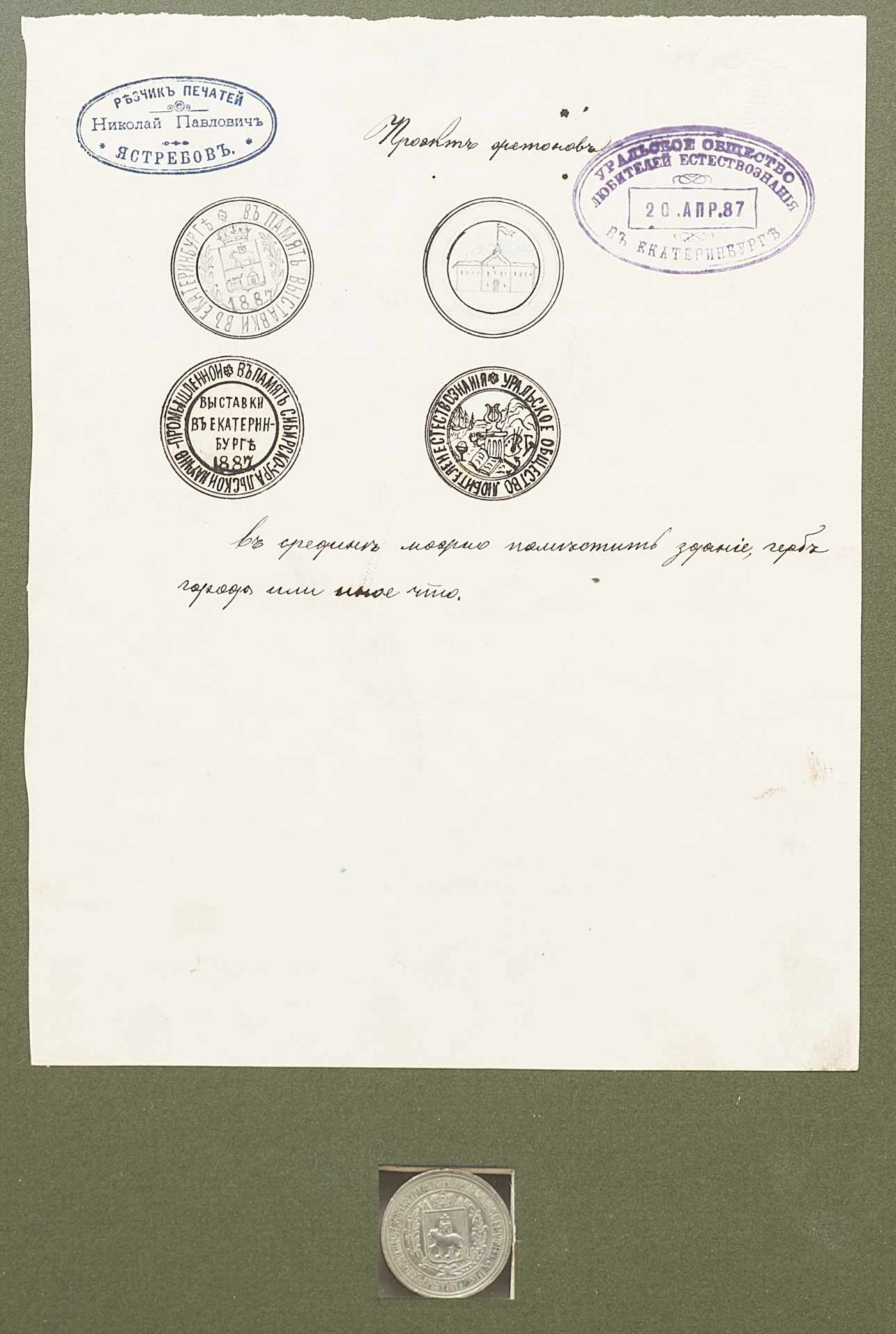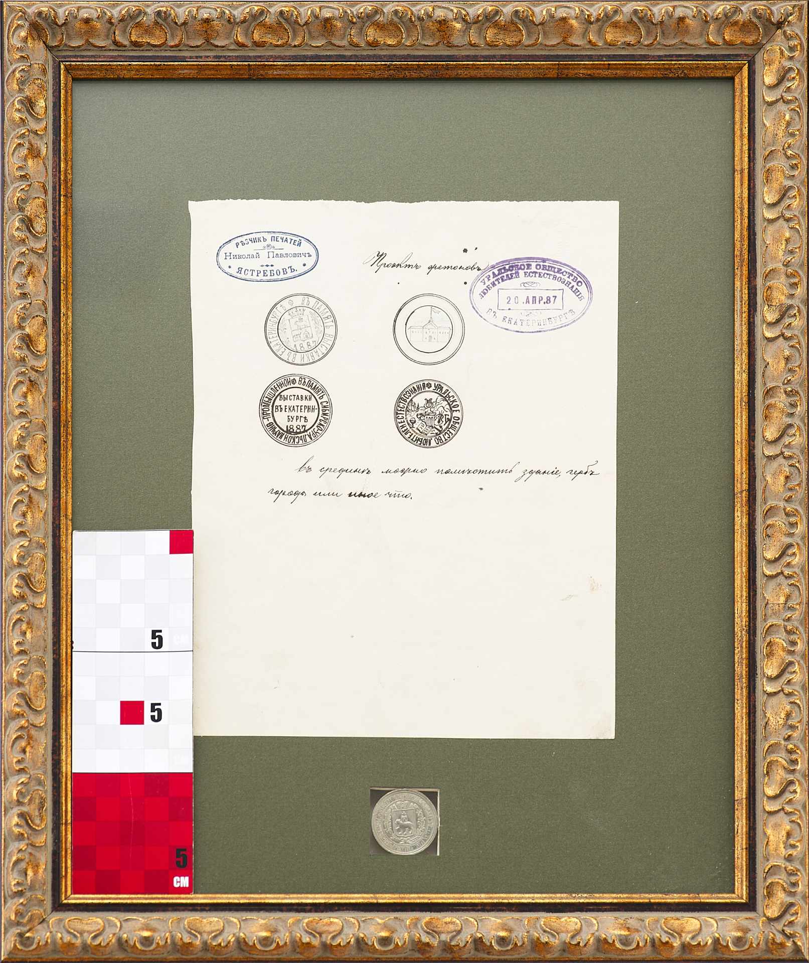 Проект жетонов и жетон Сибирско-Уральской научно-промышленной Екатеринбург 1887