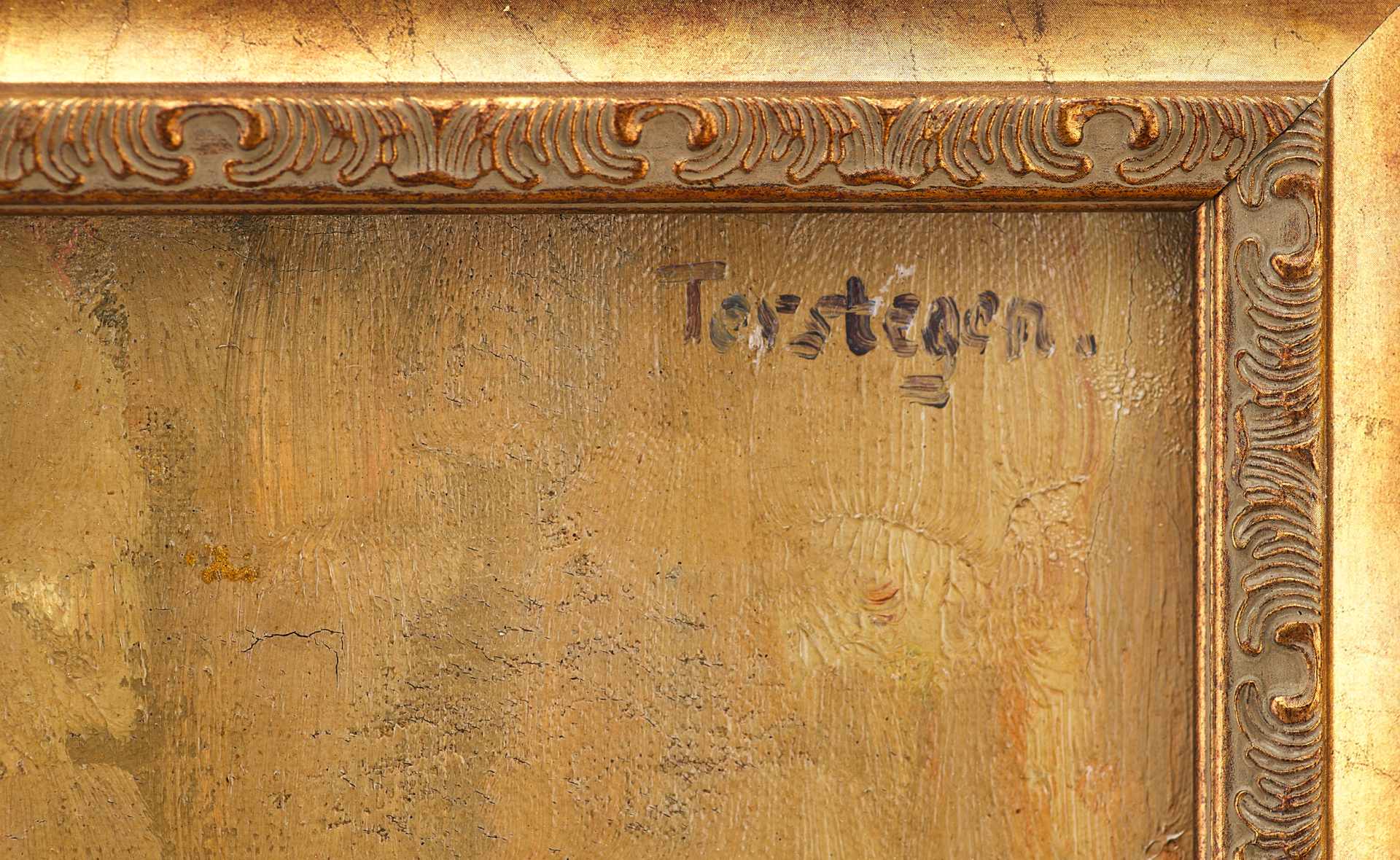 Справа вверху подпись: «Н. Terstegen». Подпись находится в «тесте» авторской живописи и имеет общий с