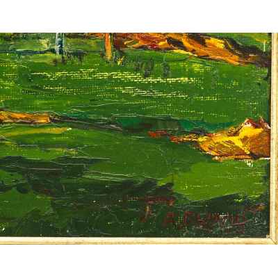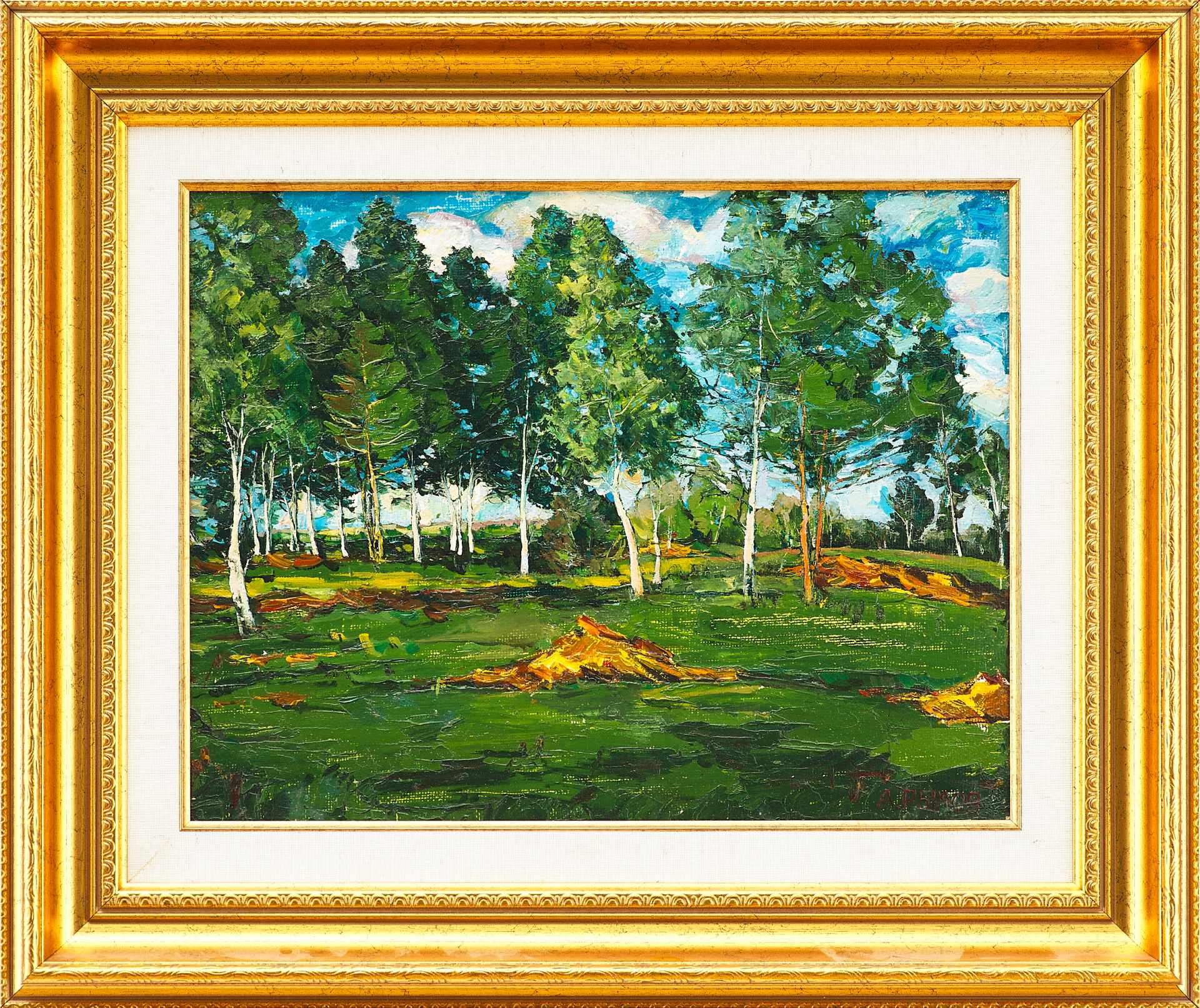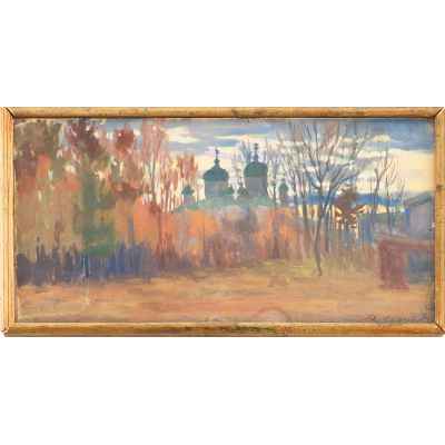 Подпись имеет аналогии с автографами Рылова Аркадия Алексадровича на произведениях хранящихся в музейных собраниях. Живописные приемы близки манере письма А.Рылова.